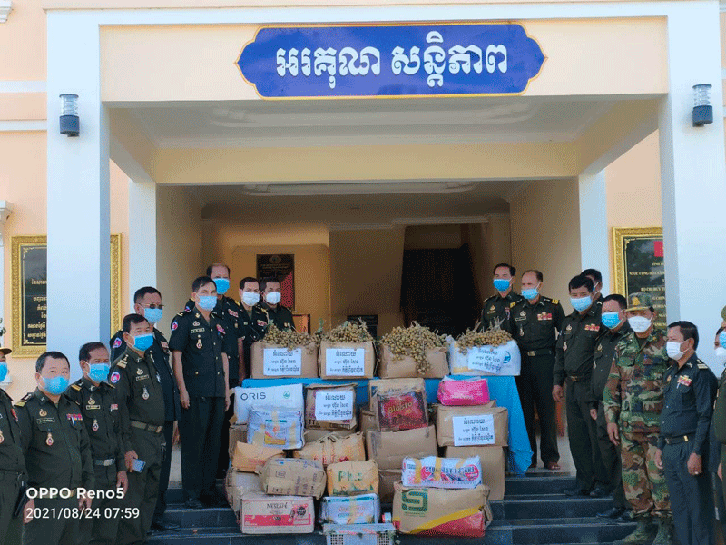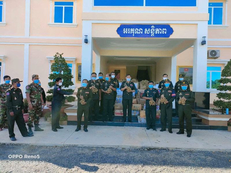 ខេត្តកំពង់ឆ្នាំង:ថ្ងៃទី ២៤ ខែសីហា ឆ្នាំ ២០២១ នៅទីបញ្ជាការដ្ឋានតំបន់ប្រតិបត្តិការសឹករងកំពង់ឆ្នាំង រៀបចំពិធីបែងចែកផ្លែមៀននិងផ្លែតាង៉ែនចំនួន៦០កេះស្មើ១២៧០គីឡូក្រាម ដែលជាអំណោយ ដ៍ថ្លៃថ្លារបស់សម្ដេចតេជោហ៊ុនសែន នាយករដ្ឋមន្ត្រីនៃព្រះរាជាណាចក្រកម្ពុជា និងសម្ដេច គតិព្រឹទ្ធបណ្ឌិត ប៊ុនរ៉ានីហ៊ុនសែន តាមរយះយោធភូមិភាគពិសេស ត្រូវបាននាំមកចែកជូន ដល់នាយទាហាន នាយទាហានរង និងពលទាហាន ចំណុះតំបន់ប្រតិបត្តិការសឹករងកំពង់ឆ្នាំង ។
