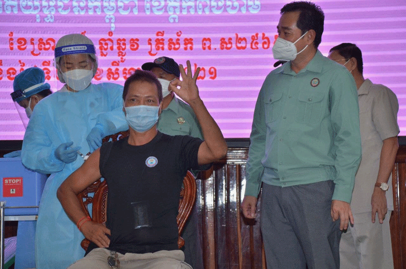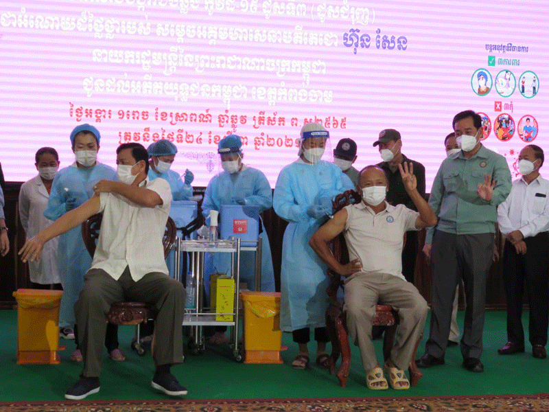 កំពង់ចាម : ក្នុងឱកាសបើកយុទ្ធនាការចាក់វ៉ាក់សាំងបង្ការជំងឺកូវីដ-១៩ ដូសទី៣ (ដូសជំរុញ) ជូនអតីតយុទ្ធជនកម្ពុជាខេត្តកំពង់ចាម នាព្រឹក ថ្ងៃទី ២៤ ខែសីហា ឆ្នាំ ២០២១នេះ ឯកឧត្តម អ៊ុន ចាន់ដា អភិបាលខេត្តកំពង់ចាម និងជាប្រធានគណៈកម្មការចំពោះកិច្ចចាក់វ៉ាក់សាំងបង្ការជំងឺកូវីដ-១៩ ខេត្តកំពង់ចាម បាន ថ្លែង ថា ដោយមានការ យកចិត្តទុកដាក់ គិតគូរ ចំពោះ សុខភាព របស់ បងៗ ពូៗ អតីត យុទ្ធជន ទាំងអស់ សម្តេច អគ្គមហាសេនាបតី តេជោ ហ៊ុន សែន នាយករដ្ឋមន្ត្រី នៃ កម្ពុជា បាន ផ្ដល់វ៉ាក់សាំង ម្ជុលទី៣ ជាដូសជំរុញ សម្រាប់ ចាក់ជូន អតីត យុទ្ធជន យើង ក្នុង ឱកាស នេះ ដើម្បីការពារ សុខភាព សំដៅ ធ្វើ យ៉ាងណា កុំ ឲ្យមាន ការ ឆ្លង រីករាល ដាល នៃ ជំងឺ កូវីដ -១៩ ក៏ដូចជា មេរោគបំលែង ខ្លួនថ្មី ដែលតា ដែល កំពុង ឆ្លង ជា បន្តបន្ទាប់ គួរអោយ ព្រួយ បារម្ភ ផងដែរ ។