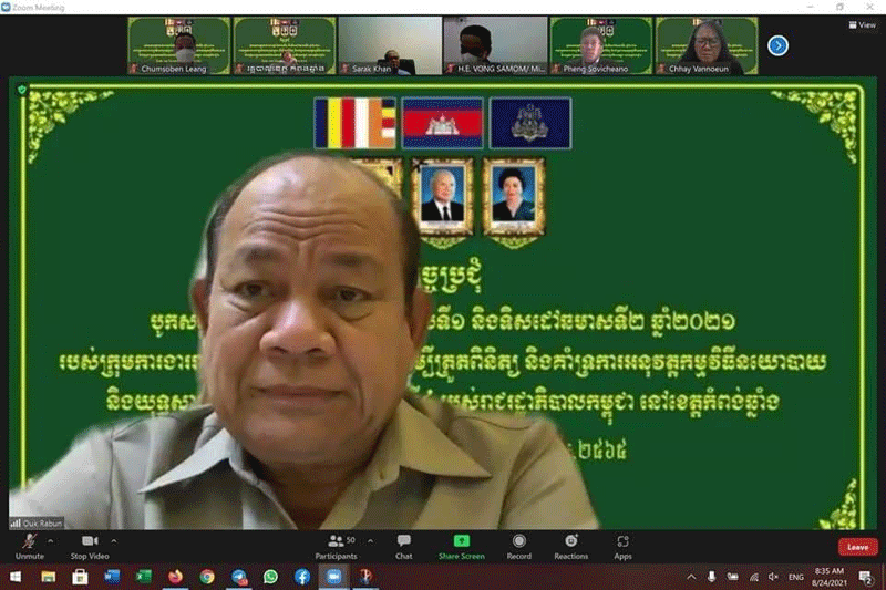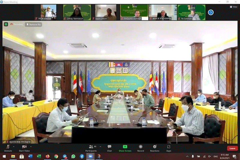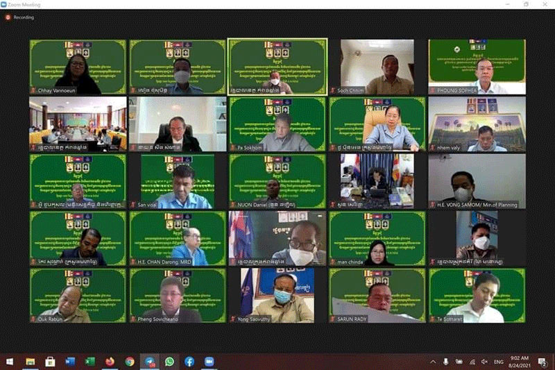 ខេត្តកំពង់ឆ្នាំង ៖កិច្ចប្រជុំបូកសរុបលទ្ធផលការងារប្រចាំឆមាសទី១ និងទិសដៅការងារឆមាសទី២ ឆ្នាំ២០២១របស់ក្រុមការងាររាជរដ្ឋាភិបាលចុះមូលដ្ឋានខេត្តកំពង់ឆ្នាំង ដើម្បីត្រួតពិនិត្យនិងគាំទ្រការអនុវត្តកម្មវិធីនយោបាយ និងយុទ្ធសាស្ត្រចតុកោណរបស់រាជរដ្ឋាភិបាល ធ្វើឡើងក្រោអធិបតីភាព ឯកឧត្តមបណ្តិតសភាចារ្យ អ៊ុក រ៉ាប៊ុន ប្រធានក្រុមការងាររាជរដ្ឋាភិបាលចុះមូលដ្ឋានខេត្តកំពង់ឆ្នាំង និង ជារដ្ឋមន្រ្តីក្រសួងអភិវឌ្ឍន៍ជនបទ និង ឯកឧត្តម .ស៊ុនសុវណ្ណារិទ្ធិ .អភិបាលខេត្តកំពង់ឆ្នាំង ព្រមទាំងមានការចូលរួមពីសំណាក់ ថ្នាក់ដឹកនាំក្រុមការងាររាជរដ្ឋាភិបាលចុះមូលដ្ឋានក្រុងស្រុក តាមប្រព័ន្ធវីដេអូ zoom ដែលបានធ្វើឡើងកាលពីថ្ងៃ២៤ ខែសីហា ឆ្នាំ២០២១ ។