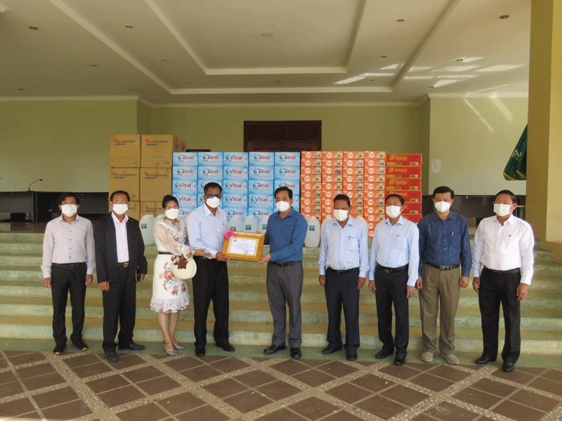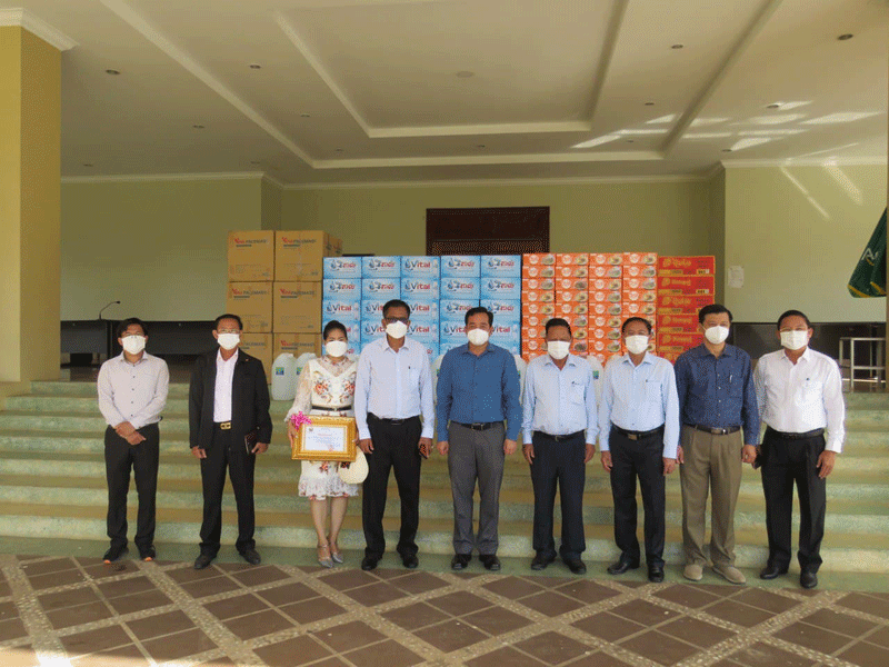 កំពង់ចាម : ឯកឧត្តម អ៊ុន ចាន់ដា អភិបាលខេត្តកំពង់ចាម និង ជា ប្រធាន គណកម្មការ ខេត្ត ប្រយុទ្ធ ប្រឆាំង នឹង ជំងឺ កូវីដ -១៩ និង ឯកឧត្ដម ខ្លូត ផន ប្រធាន ក្រុមប្រឹក្សា ខេត្ត រួមនឹង អភិបាល រង ខេត្ត នាព្រឹក ថ្ងៃទី ២៥ ខែសីហា ឆ្នាំ ២០២១ នេះ បាន អញ្ជើញ ទទួល អំណោយ ជា សម្ភារ និង ថវិកា ពី សប្បុរសជន ដែល បាន ចូលរួម ជាមួយ រាជរដ្ឋាភិបាល ដេីម្បី បង្ការ ទប់ស្កាត់ ការ ឆ្លង រីករាល ដាល នៃ ជំងឺ កូវីដ -១៩ ខណៈ កម្ពុជា កំពុង ស្ថិត ក្នុង ដំណាក់កាល រួមគ្នា ប្រយុទ្ធ ប្រឆាំង នឹង ជំងឺ ដ៏ កាច សាហាវ នេះ ។