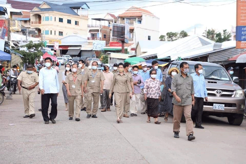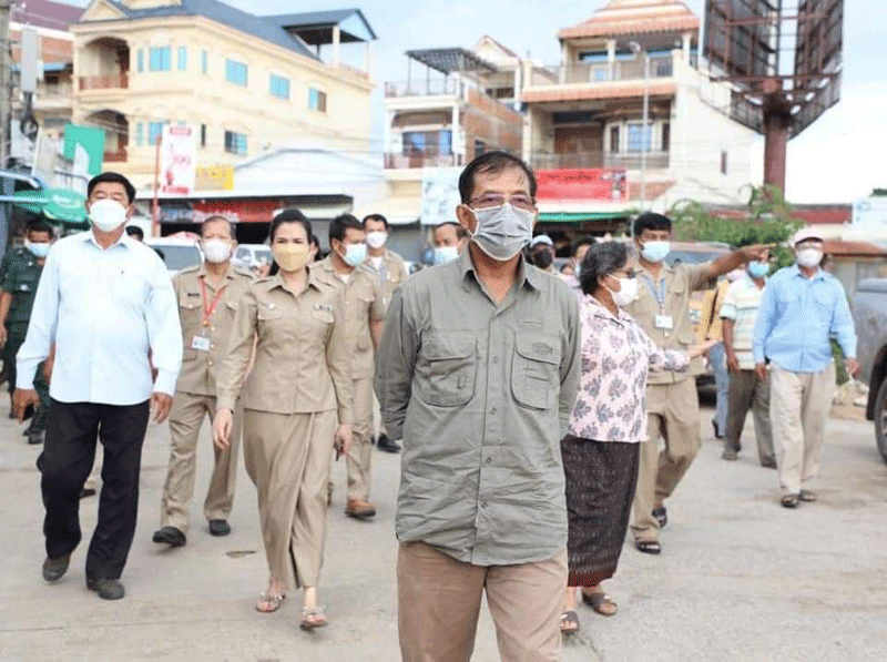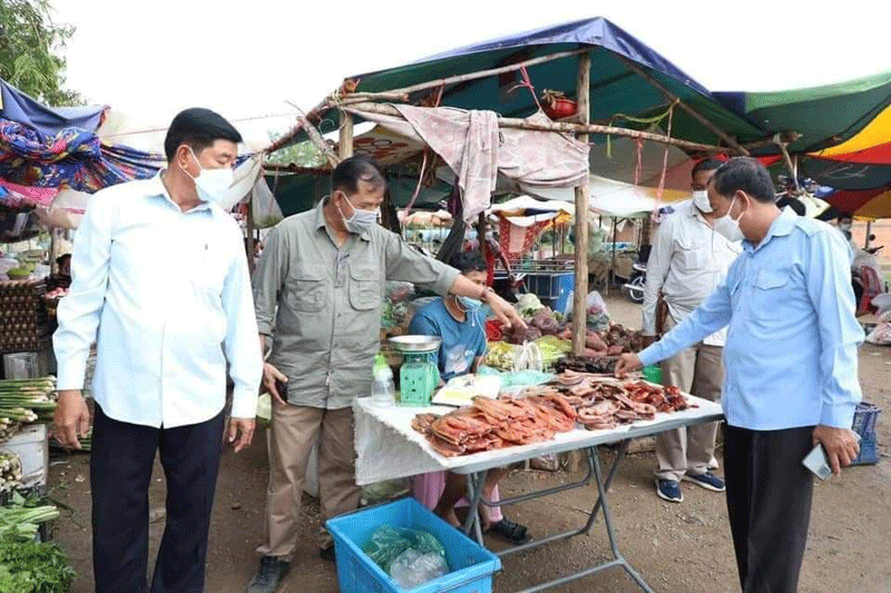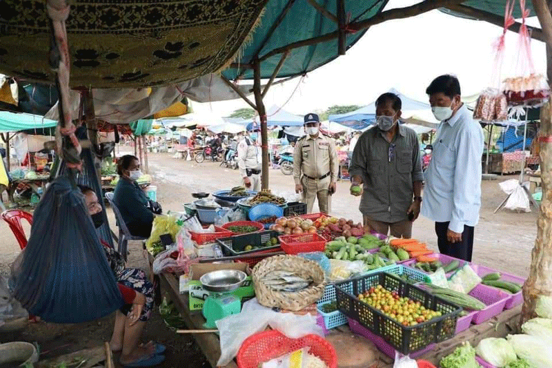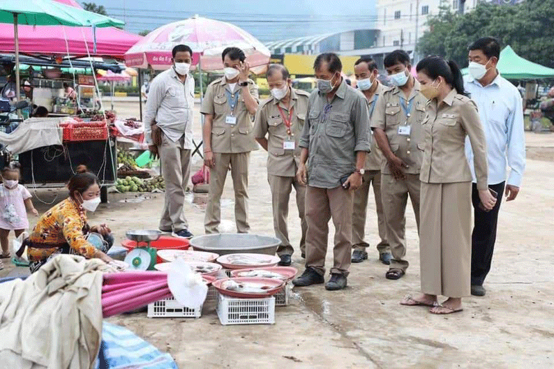ខេត្តប៉ៃលិន ៖ ឯកឧត្តម នាយឧត្តមសេនីយ៍ អ៊ី ឈាន ប្រធានក្រុមការងាររាជរដ្ឋាភិបាល លោកជំទាវ បាន ស្រីមុំ អភិបាលខេត្តប៉ៃលិន ឯកឧត្តម សៅ សារ៉ាត់ អ្នកតំណាងរាស្រ្តមណ្ឌលប៉ៃលិន ដឹកនាំក្រុមការងារ ចុះពិនិត្យមើល អាជីវករលក់ដូរនៅកន្លែងទីតាំងថ្មី ស្ថិតនៅចំណុចដី ឈ្មោះ សា ចំរើន ហៅតាអឿង ក្នុងភូមិអូរតាពុក ក្រោម សង្កាត់ទួលល្វា ក្រុងប៉ៃលិន ចាប់ពីថ្ងៃទី២៤ ខែសីហា ឆ្នាំ២០២១ ខណៈបិទខ្ទប់ផ្សារចំនួន០២ ពាក់ព័ន្ធជាមួយនឹងអាជីវករវិជ្ជមានកូវីដ១៩ ។