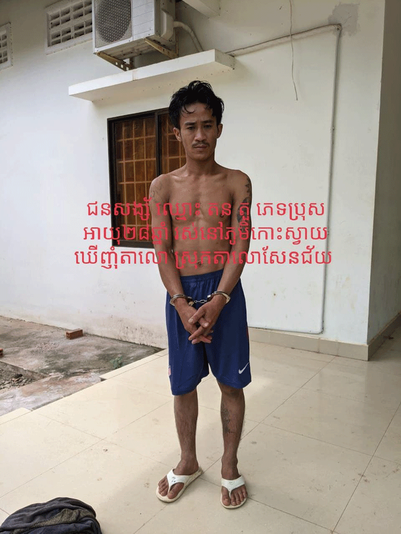 ស្នងការរងនគបាលខេត្តពោធិសាត់លោកឧុត្តមសេនីយ៍ត្រី.ម៉ូលីដា.បានអោយដឹងនៅថ្ងៃទី២៧សីហា២០២១នេះថាដោយមានកិច្ចសហការបានល្អពីខាងនគបាលខេត្តកំពង់ឆ្នាំងនៅវេលាម៉ោង៩និង០០នាទីថ្ងៃដដែលសមត្ថកិច្ចនគបាលស្រុកកំពង់ត្រឡាចខេត្តកំពង់ឆ្នាំងបានចាប់ឃាត់ខ្លួនម្នាក់ឈ្មោះ .តន់តួ.ភេទប្រុសអាយុ២៧ឆ្នាំរសនៅភូមិកោះស្វាយឃុំតាលោស្រុកតាលោសែនជយ័ធ្វើការនៅក្រុងភ្នំពេញ ។