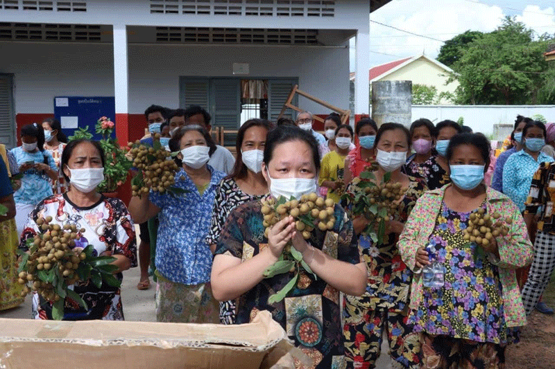 អភិបាលខេត្តបានបន្តថា ដោយមើលឃើញពីទុក្ខលំបាករបស់កសិករអ្នកដាំផ្លែមៀន សម្តេចទាំងទ្វេរបានចំណាយធនធានជួយទិញនូវផ្លែមៀនពីកសិករមកចែកជូនមន្ត្រីរាជការ អ្នកធ្វើចត្តាឡីស័ក គ្រូពេទ្យ កងកម្លាំង។ល។ បានទទួលទានផង និងជួយសម្រាលទុក្ខលំបាក នៃការខ្វះខាតដើមទុនរបស់បងប្អូនកសិករអ្នកដាំផ្លែមៀនផង។