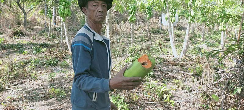 បើតាមការរៀបរាប់ពីបុរសម្នាក់ ឈ្មោះ មុត ស្មាអែល អាយុ៦៣ឆ្នាំ រស់នៅភូមិខាងលើ បានឱ្យ ដឹងថា ៖ រូបគាត់បានដាំល្ហុងមួយប្រភេទឈ្មោះ ហូឡេន ចំនួនជាង៤០០០ដើម ដែលជាតម្រូវការទីផ្សារ នៅលើផ្ទៃដីប្រមាណ១០ហិកតា ។ គាត់បន្តទៀតថា ដំណាំល្ហុងប្រភេទនេះ កាលពីមុនទាន់មានករណីជម្ងឺកូវីដ១៩ នៅពេលទុំបេះលក់១គីឡូក្រាមតម្លៃ២០០០រៀល ដោយមានម៉ូយធ្វើដំណើរមកពីក្រុងប៉ៃលិន ចូលទៅម៉ៅទិញពេលជិតទុំ បេះដឹកយកទៅលក់បន្តនៅតាម បណ្តាខេត្តនានា ។ គាត់ដាំដំណាំល្ហុងប្រភេទ ហូឡេននេះ អស់រយ:ពេលជាង៣ឆ្នាំមកហើយ គឺគេទិញយកទៅទទួលទាននៅពេលទុំ មិនមែនជាប្រភេទល្ហុងបន្លែនោះឡើយ ដោយមានរសជាតិផ្អែម ឆ្ងាញ់ តែអ្វីដែលធ្វើឱ្យគាត់មានការព្រួយបារម្ភនោះ ដោយសារតែនៅក្នុងចម្ការរបស់គាត់ជាប់នឹង ជើងភ្នំខៀវ សម្បូរទៅដោយសត្វស្វា ដែលចូលមកស៊ីល្ហុងរបស់ខ្លួនជារៀងរាល់ថ្ងៃ នៅពេលល្ហុងចាស់ជិតទុំ គឺចូលបេះស៊ីទាំងហ្វូង ហើយជញ្ជូនឡើងទៅលើភ្នំថែមទៀត ។ ជួនកាលក៏មានសត្វជ្រូក ព្រៃ ចេញពីក្នុងព្រៃភ្នំ មកស៊ីដំណាំរបស់គាត់ នាពេលយប់ស្ងាត់ផងដែរ ។