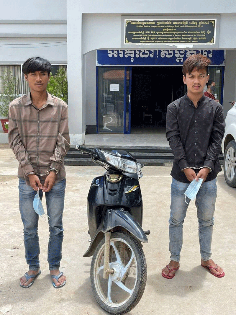 លោកវរសេនីយ៍ឯក សៅ សារឿន បានឲដឹងទៀតថាជនសង្ស័យដែលសមត្ថកិច្ចឃាត់ខ្លួនមានចំនួន02នាក់ 1.ឈ្មោះ សួរ ភាក់ណា ហៅមេឃ ភេទប្រុស អាយុ20ឆ្នាំ ស្នាក់នៅក្នុងសណ្ឋាគារ ហាក់ហួត និងទី2.ឈ្មោះ លី មករា ហៅម៉ាប់ ភេទប្រុស អាយុ17ឆ្នាំ ជនសង្ស័យទាំង02នាក់ ស្នាក់នៅភូមិក្បាលស្ពាន1 សង្កាត់ប៉ោយប៉ែត ក្រុងប៉ោយប៉ែត ខេត្តបន្ទាយមានជ័យ។