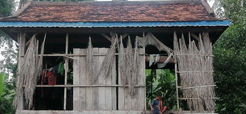 លោក ស៊ីម.ថៃ អាយុ៣៩ មានប្រពន្ឋឈ្មោះ ឈី ឈាងល័យ អាយុ២៧ឆ្នាំ មានសមាជិក៦នាក់ រស់នៅ ភូមិ ខាងលើ បានឲ្យដឹងថា គាត់មានជីវភាពក្រីក្រលំបាកណាស់ ផ្ទះ នេះបានធ្វើតាំងពី១១ឆ្នាំមុនមកម្លេះ គឺធ្វើបានតែគ្រោងផ្ទះនិងដំបូលចាប់តាំងពីរៀបការថ្មីៗមក រហូតមកដល់ពេលនេះមានកូន៤និងក្មួយកំព្រា២នាក់ គឺរស់នៅលើផ្ទះអត់ជញ្ជាំងបាំងស្លឹកដូង នៅពេលមានភ្លៀងម្តងៗ ទាំងម្តាយទាំងកូនដេកពុំបានទេ ទឹកសាចទទឹកជោគអស់។