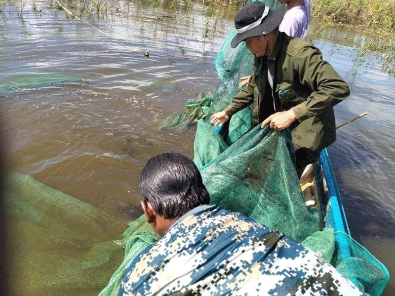 ខេត្តកំពង់ឆ្នាំង:ថ្ងៃទី០២ ០៩ ២០២១សមត្ថកិច្ចផ្នែករដ្ឋបាលជលផលកំពង់ប្រាសាទរួមជាមួយសង្កាត់រដ្ឋបាលជលផលជលគីរីសហការជាមួយសហគមន៍នេសាទ៥ភូមិកម្លាំងសរុប៣៦នាក់ មធ្យោបាយកាណូតស្មាច់តូចធំចំនួន៧គ្រឿងដឹកនាំដោយនាយផ្នែករដ្ឋបាលជលផលលោក ឃឹមឡុង ។