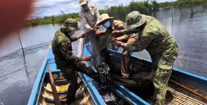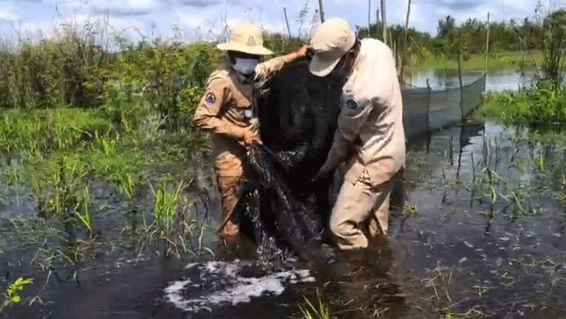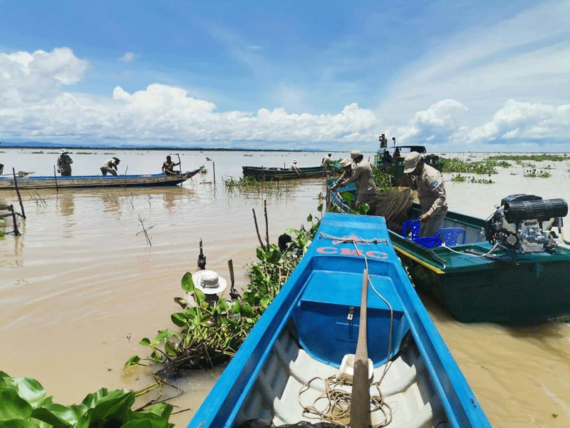 លោកប្រធានមន្ទីរកសិកម្មខេត្តកំពង់ធំបានបញ្ជាក់ថា យោងលិខិតបញ្ជាបេសកម្ម លេខ១៣១៤ មកសិ.ខលបប ចុះថ្ងៃទី៣០ ខែកក្កដា ឆ្នាំ២០២១ សង្កាត់រដ្ឋបាលជលផលកំពង់ស្វាយក្រោម សហការជាមួយ ផ្នែករដ្ឋបាលជលផលផាត់សណ្តាយ ក្រុមអធិការកិច្ចរដ្ឋបាលជលផល និងអធិការដ្ឋានរដ្ឋបាលជលផលខាងជើងបឹងទន្លេសាប ចុះទប់ស្កាត់ បង្ក្រាបបទល្មើសជលផល នៅចំណុចចាប់ពីជ្រោយវែង ដល់ជ្រោយតាសោម ឃុំផាត់សណ្តាយ ស្រុកកំពង់ស្វាយ ខេត្តកំពង់ធំ ទទួលបានលទ្ធផលដូចខាងក្រោម៖ បានរុះរើបំផ្លាញចោលឧបករណ៍នេសាទរបាំងសាច់អួន នៅនឹងកន្លែងរួមមាន – របាំងសាច់អួន ចំនួន ០៦ របាំង ប្រវែង ១៨០០ម៉ែត្រ – ឡុក ចំនួន ១២ គ្រឿង – លូ ចំនួន ១២ មាត់ – បង្គោល ចំនួន ៥០០ ដើម – លែងត្រី ចំនួន ៣០ គ.គ្រ -កម្លាំងសរុប ចំនួន ២៤ នាក់- កាណូត ០៥ គ្រឿង និងបានបង្កសំណុំរឿង។