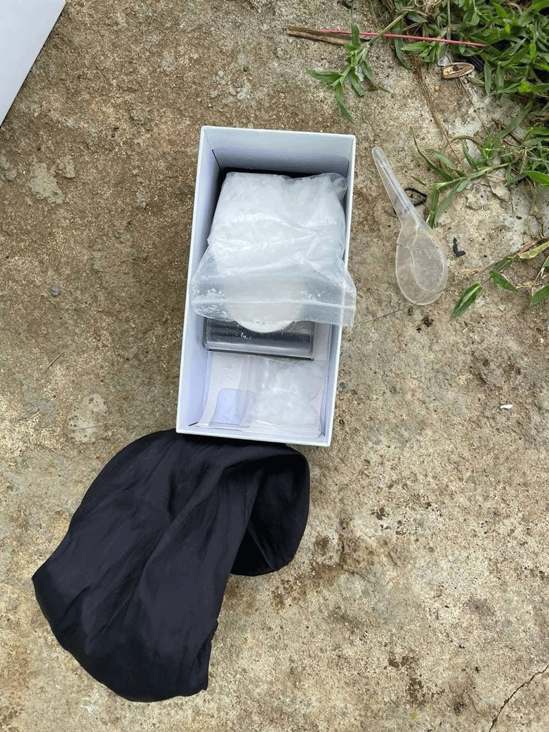 ដោយពួកទាំង03នាក់ កំពុងឈរនៅមុខបន្ទប់ជួល មើលទៅគួរអោយសង្ស័យ បានសុំធ្វើការត្រួតពិនិត្យទៅលើពួកគេ ពេលនោះជនសង្ស័យបានយកប្រអប់ដាក់ទូរសព្ទបោះចោលទៅព្រៃមុខបន្ទប់ បន្ទាប់មកសមត្ថកិច្ចឆែកក្នុងប្រអប់ឃើញមានថ្នាំញៀនប្រភេទម្ស៉ៅក្រាមពណ៌សថ្លាចំនួន02កញ្ចប់ ជញ្ជីងថ្លឹងថ្នាំចំនួន01។