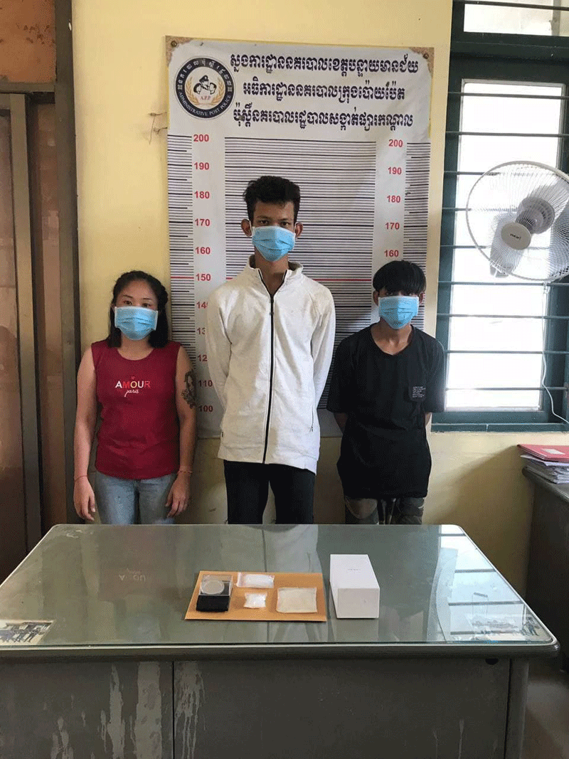 លោកវរសេនីយ៍ឯក សៅ សារឿន អធិការនគរបាលក្រុងប៉ោយប៉ែតបានឲ្យដឹងថា នៅថ្ងៃទី04 ខែកញ្ញា ឆ្នាំ2021 ដឹកនាំកម្លាំងអធិការដ្ឋាន សហការជាមួយកម្លាំងប៉ុស្តិ៍ផ្សារកណ្តាលបានល្បាតទៅដល់ចំនុចបន្ទប់ជួលរោងចក្រអូរនាង ស្ថិតក្នុងភូមិអូរឬស្សី សង្កាត់ផ្សារកណ្តាល ក្រុងប៉ោយប៉ែត បានឃើញជនសង្ស័យចំនួន03នាក់។ 1.ឈ្មោះ ភាព សូផាវ៉ាន់ ភេទប្រុស អាយុ19ឆ្នាំ រស់នៅភូមិអូរ ឃុំពេជ្រយាដារ ស្រុកភ្នំព្រឹក ខេត្តបាត់ដំបង មុខរបរ មិនប្រាកដ។ 2.ឈ្មោះ ស៊ី តូច ភេទប្រុស អាយុ18 ឆ្នាំ រស់នៅភូមិកូបធំ សង្កាត់និមិត្ត ក្រុងប៉ោយប៉ែត ខេត្តបន្ទាយមានជ័យ មុខរបរមិនពិតប្រាកដ។ 3.ឈ្មោះ ចោម សុឃា ភេទស្រី អាយុ 25ឆ្នាំ ស្នាក់នៅបន្ទប់ជួលរោងចក្រ ភូមិអូរឬស្សី សង្កាត់ ផ្សារកណ្តាល មុខរបរកម្មកររោងចក្រ។