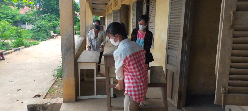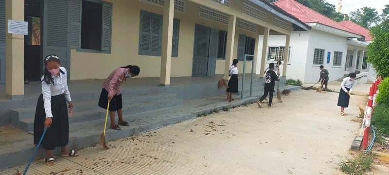 ឯកឧត្តម ឃ្លោក នួយ អភិបាល រង ខេត្ត ក្នុងដំណេីរដឹកនាំក្រុមការងារចុះសម្អាតបរិស្ថាននៅព្រឹកនេះបានប្រាប់អោយដឹងថា ៖ ការធ្វេីអនាម័យបរិស្ថាននាពេលនេះមានការប្រេីប្រាស់ថ្នាំសម្រាប់ បាញ់សំលាប់មេរោគនៅតាមបន្ទប់ ព្រមទាំងការប្រមូលសំរាមនៅតាមទីធ្លា កាត់ស្មៅ និងរៀបចំបន្ទប់រៀន ជាដេីម ។ លោកអភិបាលរងបានបន្ថែមអោយដឹងថា ការធ្វេីអនាម័យនៅពេលនេះ ក្រោយទទួលបានបទបញ្ជាពីលោកជំទាវ បាន ស្រីមុំ អភិបាលខេត្តប៉ៃលិន ណែនាំអោយធ្វេីការសម្អាតទីតាំងបរិវេណសាលារៀន ដេីម្បីត្រៀមបេីកអោយសិស្សបានចូលរៀនវិញ។