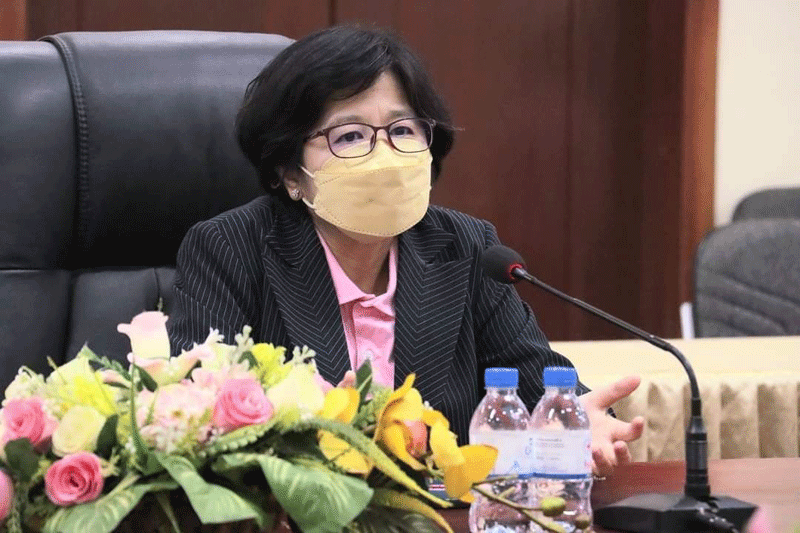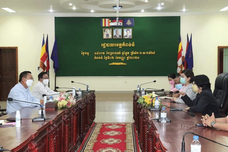 (កំពង់ធំ): ឯកឧត្តម សុខ លូ អភិបាលខេត្តកំពង់ធំ ជំនួបពិភាក្សាការងារ អំពីស្ថានភាពការរីករាលដាលនៃជំងឺកូវីដ ១៩ ក្នុងខេត្តកំពង់ធំ ជាមួយលោកជំទាវវេជ្ជបណ្ឌិត ឱ វណ្ណឌីន រដ្ឋលេខាធិការក្រសួងសុខាភិបាល និងជាប្រធានគណៈកម្មកាចំពោះកិច្ចចាក់វ៉ាក់សាំងបង្ការជំងឺកូវីដ-១៩ក្នុងក្របខណ្ឌទូទាំងប្រទេស និងលោកជំទាវវេជ្ជបណ្ឌិត លី អៃលេន (LI Ailan) តំណាងអង្គការសុខភាពពិភពលោកប្រចាំប្រទេសកម្ពុជា នៅសាលាខេត្តកំពង់ធំ នាល្ងាចថ្ងៃទី០៦ខែកញ្ញា ឆ្នាំ២០២១ នៅសាលាខេត្តកំពង់ធំ។