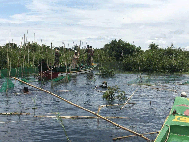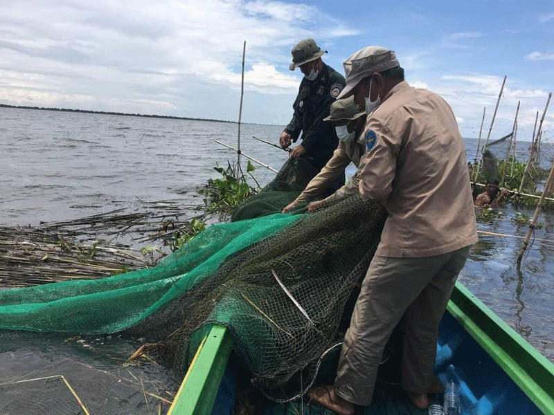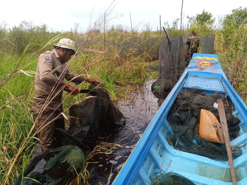 ខេត្តពោធិសាត់:នៅថ្ងៃទី៦កញ្ញា២០២១កម្លាំងសមត្ថកិច្ចផ្នែករដ្ឋបាលជលផលក្រគដឹកនាំដោយនាយផ្នែក លោក ភិនវណ្ណា ដោយមានការសហការជាមួយសង្កាត់រដ្ឋបាលជលផលកណ្តៀង.នគបាលស្រុកកណ្តៀង.យោធាខេត្ត.បសនចុះប្រតិបត្តការនៅចំណុចពីជ្រោយតាកែវ.ក្នុងភូមិកោះកែវរហូតដល់.ជ្រោយខ្សុំ ក្នុងភូមិចារុះ ឃុំរាំងទិល ស្រុកកណ្តៀងខេត្តពោធិសាត់គ្រាដែលភ្លៀងធ្លាក់រាល់ថ្ងៃហើយទឹកទន្លេសាបមានការហក់ឡើងផងដែរ ។