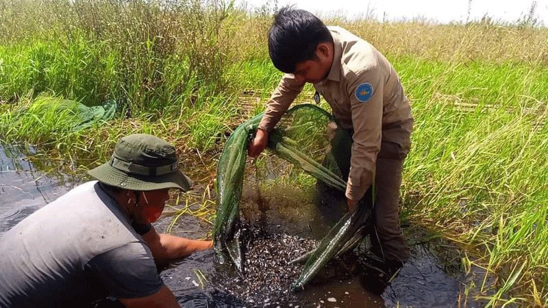 ជាលទ្ធផលបង្ក្រាបរបៃងស្បៃមុង៧ខ្សែប្រវែង៧៥០ម៉ែត្រលូកងស្បៃមុង១៤មាត់បងហគោល២០០ដើមនិងបានចាក់លែងត្រីចូលក្នុងទន្លេវិញផងដែរ ។