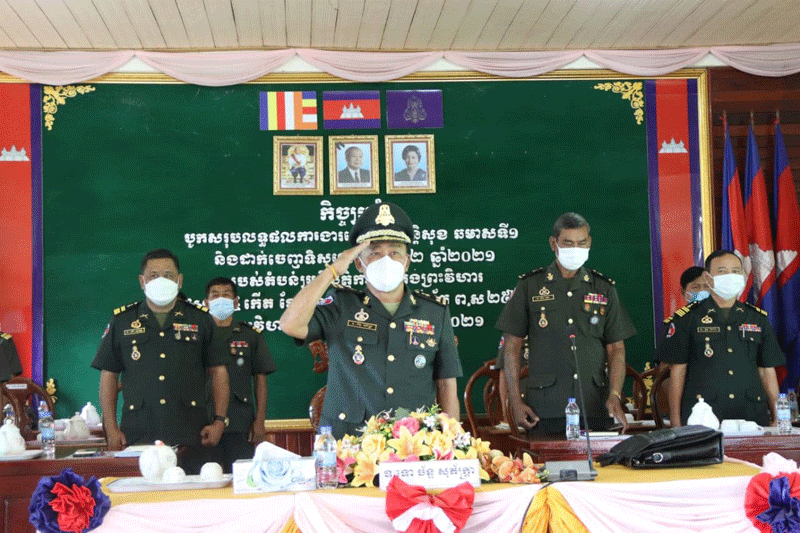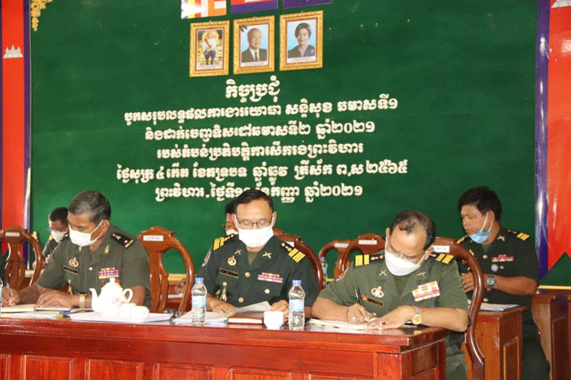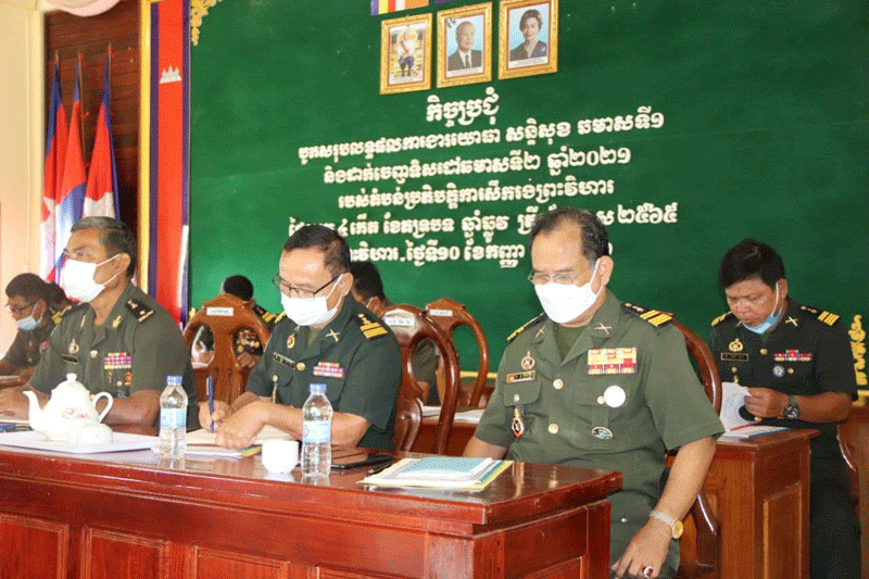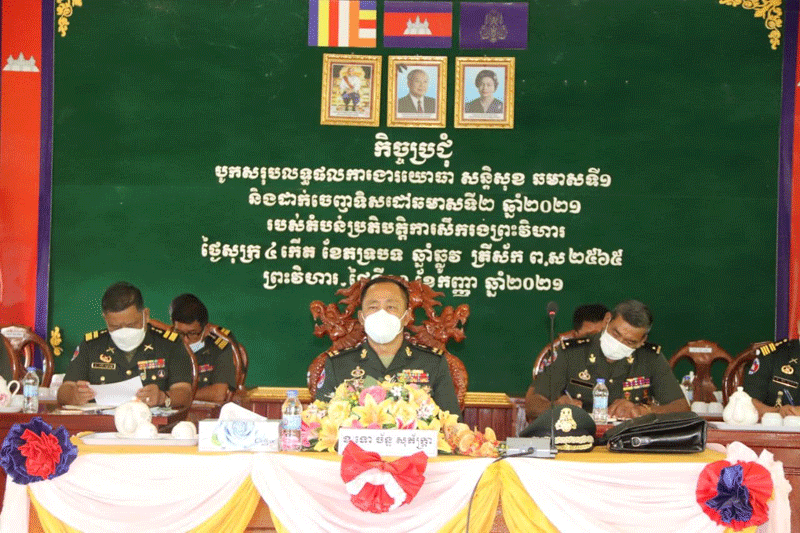 ព្រះវិហារៈនាព្រឹកថ្ងៃទី ១០ ខែកញ្ញា ឆ្នាំ២០២១នេះ នៅទីបញ្ជាការតំបន់ប្រតិបត្តិការសឹករង ព្រះវិហារបានបើកក្នុងកិច្ចប្រជុំបូកសរុបការងារយោធាសន្តិសុខ ប្រចាំឆមាស ទី១និងដាក់ ចេញ ទិសដៅឆមាសទី២ ឆ្នាំ២០២១និងបានប្រកាសតែងតាំងផ្លាស់ប្តូរ មុខងារតួនាទីភារកិច្ច របស់ នាយ នាយទាហាន ចំណុះ ទីបញ្ជាការតំបន់ប្រតិបត្តិការសឹករងព្រះវិហារ។ កិច្ចប្រជុំនេះធ្វើឡើងក្រោមវត្តមានឯកឧត្ដម ឧត្តមសេនីយ៍ទោ ច័ន្ទ សុភ័ក្ត្រា មេបញ្ជាការ តំបន់ប្រតិបត្តិការសឹករងព្រះវិហារ និងមានការចូលរួមមេបញ្ជាការង នាយ នាយរងការិយា ល័យចំណុះទីបញ្ជាការទាំងមូលផងដែរ។