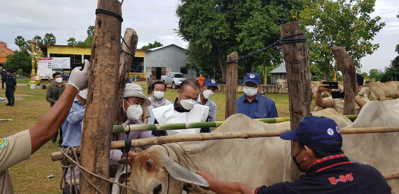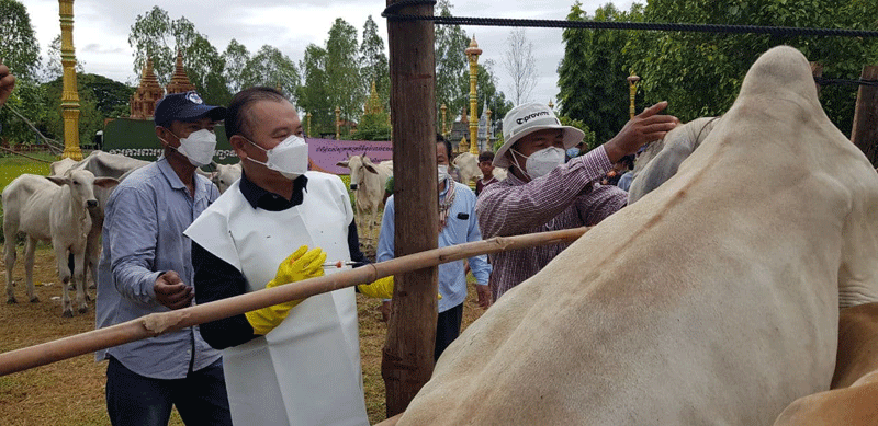 ឯកឧត្តម.តាន់.ផាន់ណារ៉ា.ប្រតិភូរាជរដ្ឋាភិបាលនិងជាអគ្គនាយកដ្ឋានសុខភាពសត្វបានលើកឡើងថា ជំងឺដំពកស្បែកលើសត្វគោនេះ គឺជាមេរោគថ្មីមួយដែលកំពុងឆ្លងចូលមកលើសត្វនៅក្នុងប្រទេសកម្ពុជា ហើយបាននិងកំពុងឆ្លងចូលមកដល់ក្នុងខេត្តមួយចំនួជំងឺដំពកស្បែកនេះ គឺមានភាគរយតិចណាស់ដែលអាចសម្លាប់សត្វគោបាន ដោយសារតែការព្យាបាលនិង ការប្រើប្រាស់ថ្នាំរបស់ម្ចាស់គោ មិនត្រូវតាមគោលការណ៍បច្ចេកទេសក្នុងការព្យាបាលជំងឺដំពកស្បែកនេះ ហើយនៅព្រឹកនេះគឺមន្ត្រីជំនាញបសុពេទ្យខេត្ត និងចុះមកបើកយុទ្ធនាការចាក់វ៉ាក់សាំងការពារជំងឺដំពកស្បែកដល់សត្វគោនិងក្របីរបស់បងប្អូនប្រជាពលរដ្ឋនៅក្នុងឃុំនេះមុនគេ រួចនិងបន្តទៅចាក់វ៉ាក់សាំងជូនដល់សត្វគោរបស់បងប្អូនប្រពលរដ្ឋនៅតាមបណ្តាខេត្តជាបន្តទៀត ។