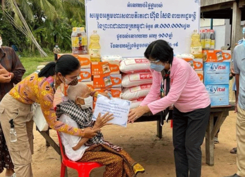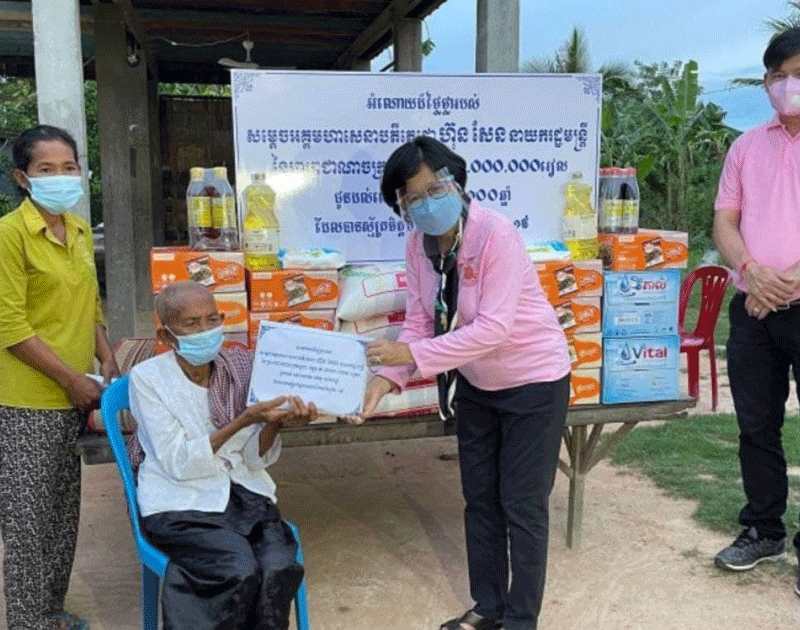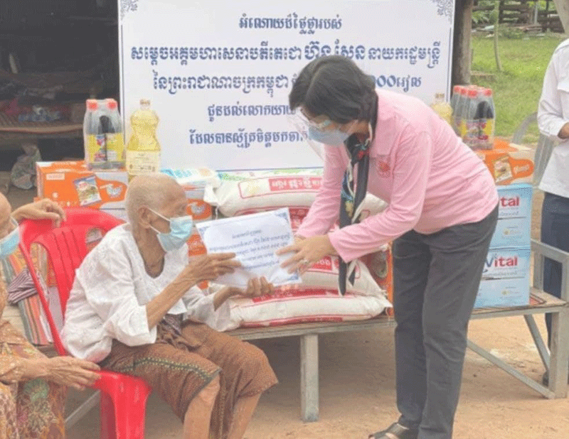 ខេត្តពោធិសាត់:នៅថ្ងៃទី 11 កញ្ញា 2021 រដ្ឋលេខាធិការក្រសួងសុខាភិបាលនិងជាប្រធាន គណៈកម្មការចំពោះកិច្ចចាក់វ៉ាក់សាំងកូវីត19 គ្រប់ខណ្ឌទូទាំងប្រទេសបាននាំយកអំណោយ របស់សម្ដេចតេជោហ៊ុនសែននាយករដ្ឋមន្ត្រីនៃកម្ពុជាទៅប្រគល់ជូនដល់ខ្នងផ្ទះរបស់លោកយាយអាយុ 100 ឆ្នាំឡើងចំនួន 5 នាក់បន្ថែមទៀតនៅក្នុងស្រុកក្រគរខេត្តពោធិ៍សាត់ បន្ទាប់ពីពួកគាត់បានស្ម័គ្រចិត្តចាក់វ៉ាក់សាំងប្រឆាំងជម្ងឺកូវីត19 ។