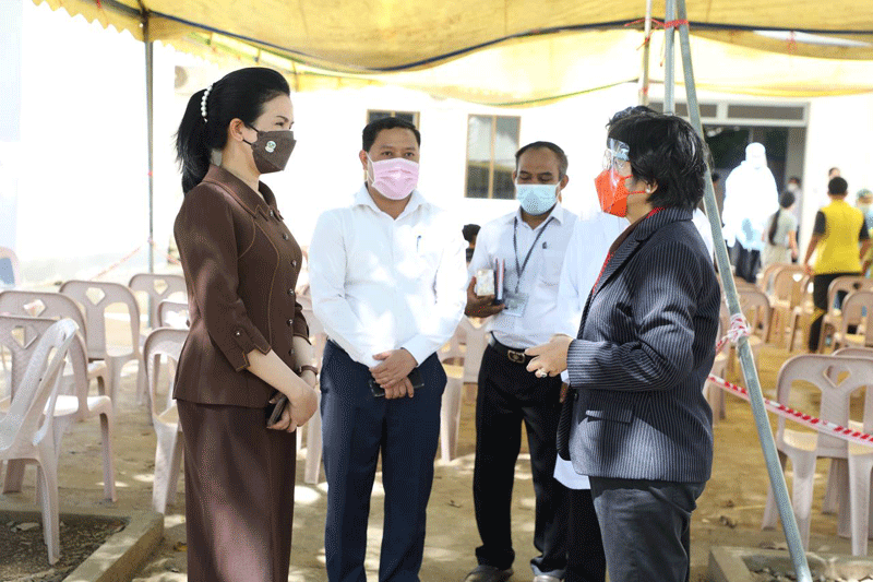 ខេត្តប៉ៃលិន ៖ លោកជំទាវវេជ្ជបណ្ឌិត ឱ វណ្ណឌីន រដ្ឋលេខាធិការក្រសួងសុខា ភិបាល និងជាប្រធានគណៈកម្មការចំពោះកិច្ចចាក់វ៉ាក់សាំងកូវីដ ១៩ និងលោកជំទាវ បាន ស្រីមុំ អភិបាលខេត្តប៉ៃលិន ឯកឧត្តម លោកជំទាវ ប្រតិភូអមដំណើរ របស់ក្រសួងសុខាភិបាល លោក លោកស្រីអភិបាលរងខេត្ត អភិបាលក្រុង ស្រុក ប្រធានអង្គភាពពាក់ព័ន្ធ ក្រុមគ្រូពេទ្យជួរមុខ លោកគ្រូ អ្នកគ្រូ យុវជនសហភាពសហព័ន្ធយុវជនកម្ពុជាខេត្ត រួមទាំងប្រជាពលរដ្ឋ បានអញ្ជើញប្រកាសបិទយុទ្ធនាការចាក់វ៉ាក់សាំងបង្ការជំងឺកូវីដ-១៩ ជូនដល់ប្រជាពលរដ្ឋដែលមានអាយុ១៨ឆ្នាំឡើងទៅ នៅក្នុងបរិវេណមន្ទីរពេទ្យបង្អែកខេត្តប៉ៃលិន ។