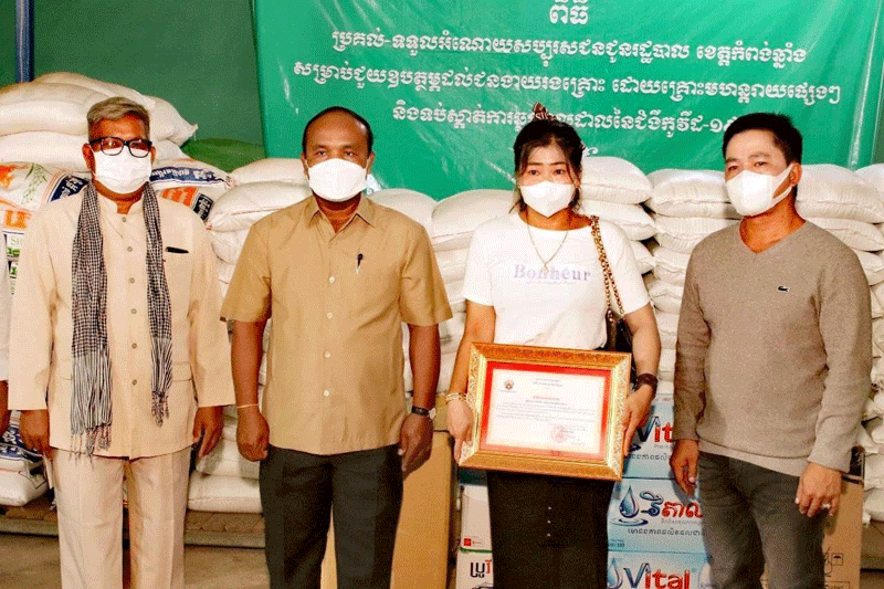 ខេត្តកំពង់ឆ្នាំងៈនៅព្រឹកថ្ងៃទី១៣ ខែកញ្ញា ឆ្នាំ២០២១ លោក អម សភា អភិបាលរងខេត្ត តំណាងអោយឯកឧត្តម ស៊ុន សុវណ្ណារិទ្ធិ អភិបាលខេត្ត ខេត្តកំពង់ឆ្នាំង បានអញ្ជើញទទួលអំណោយឧបត្ថម្ភពីសប្បុរសជន ជូនរដ្ឋបាលខេត្តកំពង់ឆ្នាំងសម្រាប់ប្រេីប្រាស់ ក្នុងការចូលរួមសកម្មភាព ប្រយុទ្ធប្រឆាំងនិងទប់ស្កាត់ការរីករាលដាល នៃជំងឺកូវីដ-១៩ ក្នុងខេត្ត ។