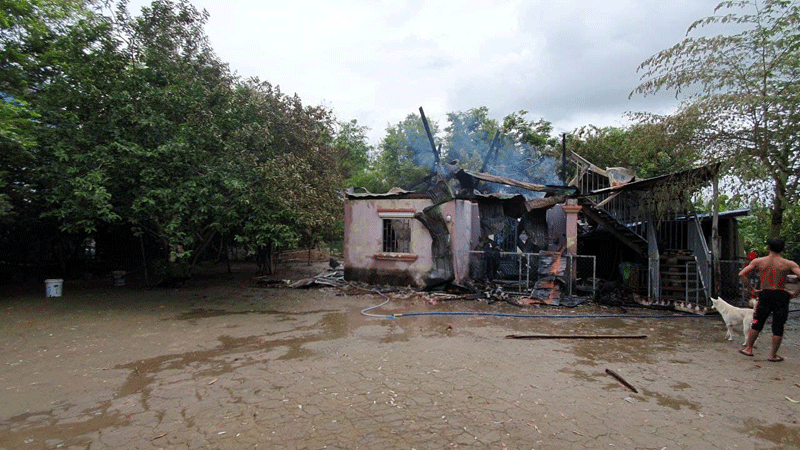 ខេត្តស្វាយរៀង៖ផ្ទះប្រជាពលរដ្ឋមួយខ្នងត្រូវអគ្គីភ័យលេបត្របក់អស់សល់តែផេះបណ្តាលមកពីផ្ទុះសេខ្សែភ្លើង។