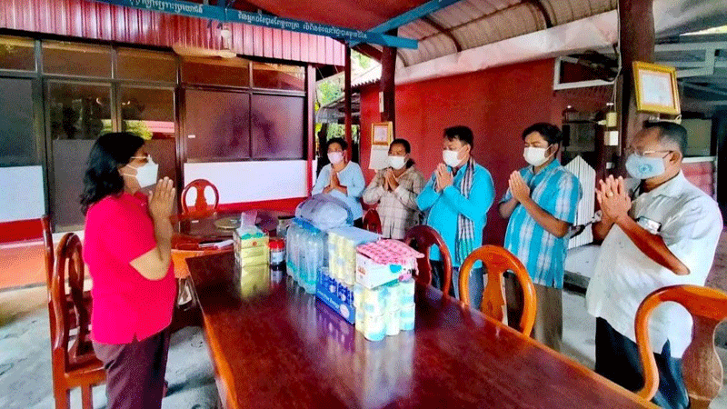 ស្រី ពេជ សូភា ប្រធានមន្ទីរកិច្ចការនារីខេត្តកំពង់ឆ្នាំងនិងលោក ឈាង ចន្ធី អនុប្រធានមន្ទីសង្គមកិច្ចខេត្តកំពង់ឆ្នាំង រួមនិងសហការី បានអញ្ជើញរួមគ្នាចុះសាកសួរសុខទុក្ខលោកជំទាវ កែ ច័ន្ទមុនី អ្នកតំណាងរាស្រ្តមណ្ឌលកំពង់ឆ្នាំងដែលកំពុងធ្វើចត្តាឡីស័កនៅគេហដ្ឋានរបស់លោកជំទាវសិ្ថតក្នុងសង្កាត់ខ្សាមក្រុងនិងខេត្តកំពង់ឆ្នាំង។
