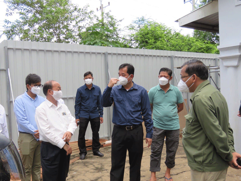 ដោយឡែក ក្នុងឱកាសដឹកនាំក្រុមការងារ អញ្ជើញចុះពិនិត្យឃ្លាំងពាណិជ្ជកម្ម ១កន្លែង ស្ថិតនៅចំណុចភូមិត្រពាំងចា ឃុំក្រឡា ស្រុកកំពង់សៀម ដែលត្រៀមរៀបចំធ្វើជាមណ្ឌលព្យាបាលអ្នកជំងឺកូវីដ-១៩ ។ ឯកឧត្តម អ៊ុន ចាន់ដា អភិបាល ខេត្តកំពង់ចាម និងជាប្រធានគណៈកម្មការខេត្តប្រយុទ្ធប្រឆាំងនឹងជំងឺកូវីដ-១៩ បានជម្រុញដល់ក្រុមការងារបច្ចេកទេស ធ្វើយ៉ាងណា ត្រូវពន្លឿនការងារនេះ ឲ្យរួចមុនថ្ងៃទី២០ ខែកញ្ញា នេះ ដើម្បី បញ្ជូនអ្នកជំងឺកូវីដ-១៩ កម្រិតស្រាល ដែលកំពុងសម្រាកព្យាបាល នៅវិទ្យាល័យព្រះសីហនុ មកសម្រាកព្យាបាលនៅទីនេះវិញ ក៏ព្រោះតែ វិទ្យាល័យព្រះសីហនុ ក្រុងកំពង់ចាម ត្រូវប្រគល់ទៅឲ្យសាលាវិញ ដើម្បី បើកឲ្យដំណើរការសិក្សា ដូចធម្មតា ឡើងវិញ ។