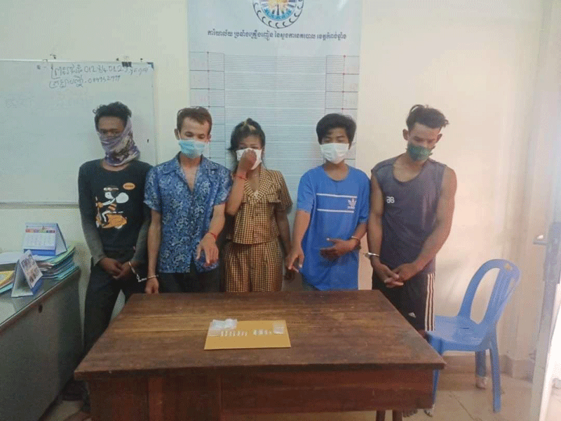 ខេត្តកំពង់ឆ្នាំង:ជនសង្ស័យប្រុសស្រី៥នាក់រួមនិងថ្នាំញៀនជាច្រើនកញ្ចប់ត្រូវបានសមត្ថកិច្ចការរិយាល័យប្រឆាំងគ្រឿងញៀនខេត្តសហការជាមួយនគបាលស្រុកធ្វើការឃាត់ខ្លួនបានជាប់ពាក់ពន្ធ័ករណីគ្រឿងញៀន ។