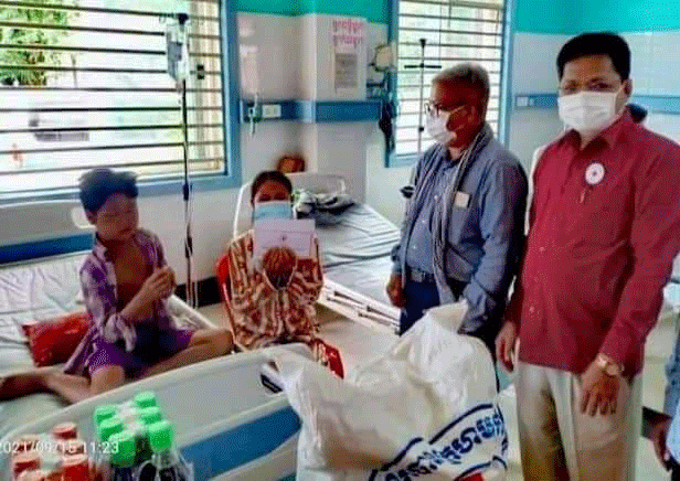 ខេត្តកំពង់ឆ្នាំងៈនៅថ្ងៃទី១៥ ខែកញ្ញា ឆ្នាំ២០២១ លោក អ៊ុន សុផល នាយករដ្ឋបាលសាលាខេត្ត តំណាងដ៏ខ្ពង់ខ្ពស់ឯកឧត្ដមស៊ុន សុវណ្ណារិទ្ធិ អភិបាលខេត្តកំពង់ឆ្នាំង និង លោក ហៃមនោរម្យ ប្រធានកិត្តិយសអនុសាខាឲកាកបាទក្រហមកម្ពុជាស្រុកជលគិរី និងសហការី ចុះសាកសួសុខទុក្ខនិងនាំយកបាននាំយកអំណោយរបស់ឯកឧត្ដម ស៊ុន សុវណ្ណរិទ្ធ អភិបាលខេត្តកំពង់ឆ្នាំង រួមទាំងអំណោយរបស់អនុសាខាកាកបាទក្រហមកម្ពុជាស្រុកជលគីរី ឧបត្ថម្ភដល់កុមាររងគ្រោះឈ្មោះ ជួន ម៉េងជី អាយុ១៣ឆ្នាំ រស់នៅភូមិកំពង់ខ្លាញ់ ឃុំជលសា ស្រុកជលគិរី ត្រូវពស់ចឹកកាលពីថ្ងៃទី១៤ ខែកញ្ញា ឆ្នាំ២០២១ ដែលកំពុងសម្រាកព្យាបាលនៅមន្ទីរពេទ្យបង្អែកបាធាយ ស្រុកបាធាយខេត្តកំពង់ចាម ។