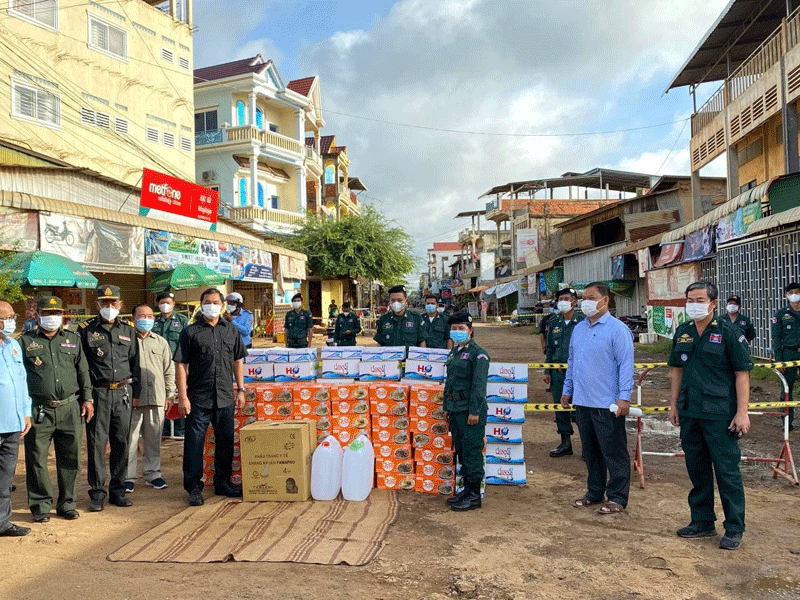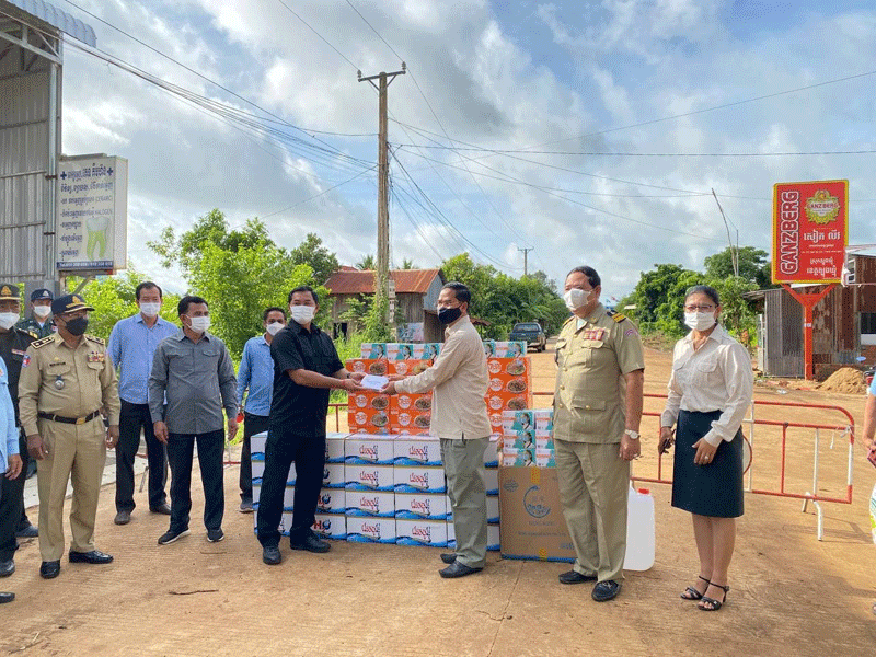 ជាមួយគ្នា នោះ ឯកឧត្តម អភិបាលខេត្ត ក៏បានធ្វើការសំណេះសំណាលលើកទឹកចិត្ត ដល់អាជ្ញាធរ និងកងកម្លាំងកំពុងឈរជើង១២គោលដៅ លើទីតាំងបិទខ្ទប់២ខាងលើ សរុប៨៤នាក់ ដោយបានឧបត្ថម្ភ មី៦៥កេស ទឹកសុទ្ធ៣០កេស ម៉ាស២កេស អាកុល៣កាន និងថវិកាក្នុងម្នាក់២ម៉ឺនរៀល សរុប១,៦៨០,០០០រៀល ។
