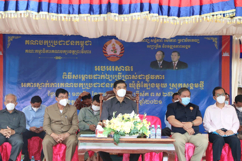 ព្រះវិហារៈ អគារស្នាក់ការ គណបក្សប្រជាជនកម្ពុជាថ្មីមួយទៀតហើយ ស្ថិតនៅឃុំភ្នំត្បែង១ ស្រុកសង្គមថ្មី ខេត្តព្រះវិហារ ដែលធ្វើការសាងសង់អស់ថវិកាជិត ៣ម៉ឺនដុល្លា ត្រូវបានសម្ពោធដាក់ឲ្យប្រើប្រាស់ជាផ្លូវការហើយ នាព្រឹកថ្ងៃទី១៩ ខែកញ្ញាឆ្នាំ២០២១នេះ ក្រោមអធិបតីភាព ឯកឧត្ដម មាស សុភា សមាជិកគណៈអចិន្ត្រៃយ៍គណៈកម្មាធិការកណ្តាល និងជាប្រធានក្រុមការងារថ្នាក់កណ្តាលចុះមូលដ្ឋានខេត្តព្រះវិហារ និងដោយមានការចូលរួម ពីឯកឧត្ដ ប្រាក់ សុវណ្ណ ប្រធានគណៈកម្មាធិការគណបក្សប្រជាជនកម្ពុជាខេត្តព្រះវិហារ។