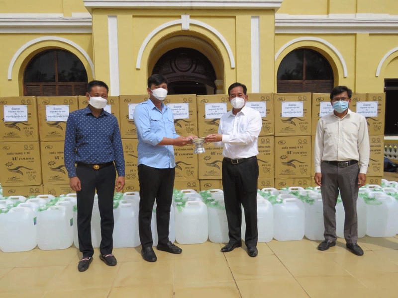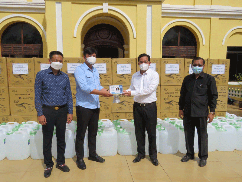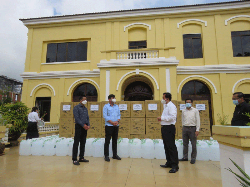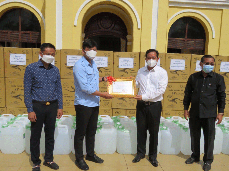 កំពង់ចាម : ឯកឧត្តម អ៊ុន ចាន់ដា អភិបាលខេត្តកំពង់ចាម និងជាប្រធានគណៈកម្មការខេត្តប្រយុទ្ធ ប្រឆាំង នឹងជំងឺកូវីដ-១៩ នាព្រឹកថ្ងៃទី២០ ខែកញ្ញា ឆ្នាំ ២០២១ នេះ បានអញ្ជើញទទួលអំណោយពីអ្នកឧកញ៉ា ឡេង ណាវ៉ាត្រា ដែលបានចូលរួមឧបត្ថម្ភ ថវិកា ចំនួន១០០,០០០,០០០រៀល ម៉ាស ២៥០,០០០ម៉ាស និង ទឹក អាល់កុលចំនួន ៣០០០លីត្រ សម្រាប់ ប្រេីប្រាស់ ក្នុង យុទ្ធនាការ បង្ការ និង ទប់ស្កាត់ ការ ឆ្លង រីករាល ដាល នៃ ជំងឺ កូវីដ -១៩ ក្នុង ភូមិសាស្ត្រ ខេត្តកំពង់ចាម ។