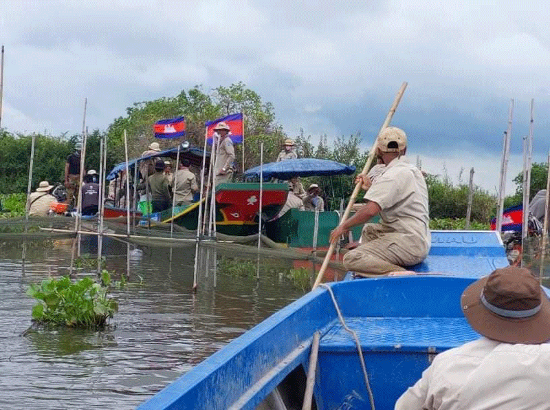 ខេត្តកំពង់ឆ្នាំង:ថ្ងៃទី 20 ខែកញ្ញាឆ្នាំ 2021សមត្ថកិច្ចចម្រុះរដ្ឋបាលជលផលព្រុំប្រទល់៣ខេត្ត កំពង់ធំ.កំពង់ចាម.កំពង់ឆ្នាំងដែលនាំដោយឯកឧត្តម.ណៅធួក.រដ្ឋលេខាធិការនៃក្រសួងកសិកម្មរុក្ខាប្រមាញ់និងនេសាទអមដំណើរដោយប្រធានមន្ទីរកសិកម្មរុក្ខាប្រមាញ់និងនេសាទខេត្តកំពង់ឆ្នាំងលោក.ងិនហ៊ុន.អធិការដ្ឋានរដ្ឋបាលជលផលខាងត្បូងបឹងទន្លេសាបនិងខាងជើងបឹងទន្លេសាបនិងខណ្ឌរដ្ខបាលជលផលកំពង់ឆ្នាំងកំពង់ធំកំពង់ចាមនិងសហការជាមួយព្រមទាំងសហគមន៍នេសាទចុះធ្វើការរុះរើបំផ្លាញចោលរបាំងសាច់អួននិងរបាំងស្បៃមុងនៅព្រំប្រទល់ ៣ ខេត្តកំពង់ចាម.កំពង់ឆ្នាំង.កំពង់ធំ។