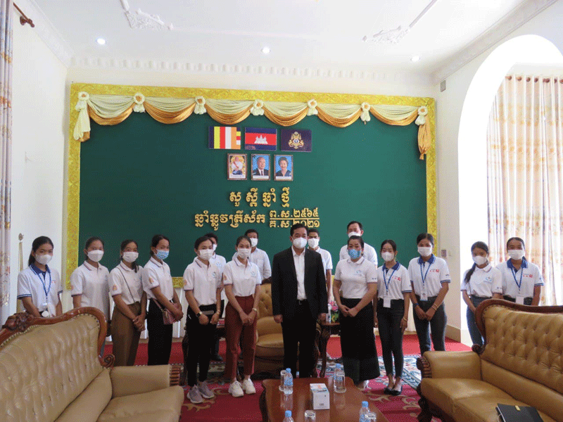 កំពង់ចាម : ឯកឧត្តម អ៊ុន ចាន់ ដា អភិបាលនៃគណៈអភិបាលខេត្ត កំពង់ចាម បាន ថ្លែង លើកទឹកចិត្ត ដល់ ក្រុមយុវជន ស្ម័គ្រចិត្ត ដើម្បី សហគមន៍ ឲ្យ ខិតខំ អភិវឌ្ឍន៍ ចំណេះដឹង បន្ថែមទៀត ដើម្បី បម្រើ ផលប្រយោជន៍ ប្រជាពលរដ្ឋ និង សង្គមជាតិ ការលើកឡើងយ៉ាង ដូច្នេះក្នុង ឱកាស ដែល ក្រុមយុវជន ស្ម័គ្រចិត្ត ដើម្បី សហគមន៍ ចូលជួប សំដែង ការគួរសម នា ព្រឹក ថ្ងៃទី២០ ខែកញ្ញា ឆ្នាំ២០២១ នៅ សាលាខេត្ត កំពង់ចាម ។