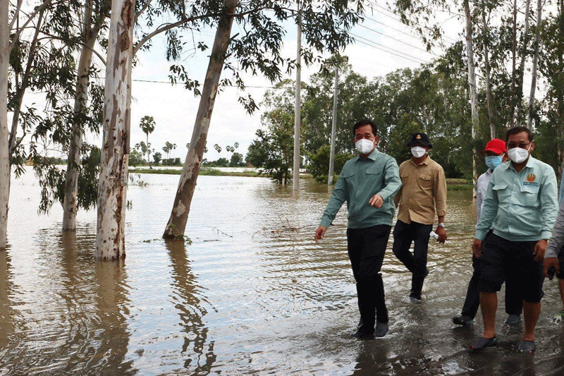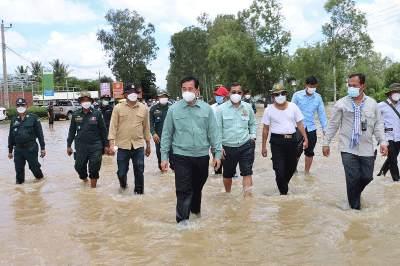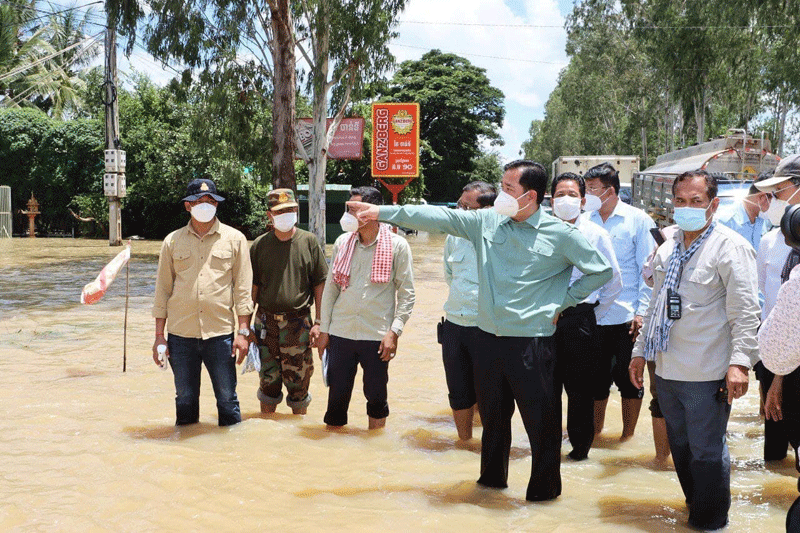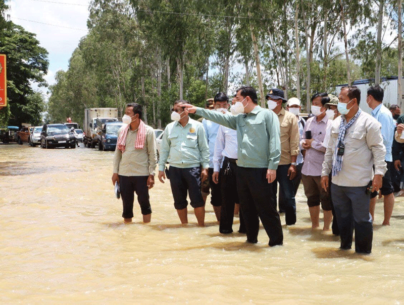 កំពង់ចាម : បន្ទាប់ពី ភ្លៀង បាន បង្អុរ ជាប់ៗ គ្នា នា ប៉ុន្មាន ថ្ងៃ កន្លងមកនេះ បានធ្វើ ឲ្យ ជន់ លិច កំណាត់ ផ្លូវជាតិ លេខ ៦ និង លេខ ៧ ប្រវែង ប្រមាណ ជា ១.០០០ ម៉ែត្រ ស្ថិតនៅ ចំណុច ភូមិ កប្បាស ឃុំ ខ្វិត ធំ ស្រុក ព្រៃឈរ ខេត្តកំពង់ចាម បណ្ដាល ឲ្យ រំខាន ដល់ ការធ្វើ ចរាចរណ៍ ក៏ដូចជា ការ រស់នៅ របស់ ប្រជាពលរដ្ឋ ។ នៅ ព្រឹក ថ្ងៃទី ២១ ខែកញ្ញា ឆ្នាំ ២០២១នេះ ឯកឧត្ដម អ៊ុន ចាន់ ដា អភិបាល នៃ គណៈ អភិបាល ខេត្តកំពង់ចាម បាន ដឹកនាំ មន្ត្រី ពាក់ព័ន្ធ និង អាជ្ញាធរ មូលដ្ឋាន អញ្ជើញ ចុះ ពិនិត្យ ស្ថានភាព ជាក់ស្ដែង ដើម្បី រក វិធីសាស្ត្រ ជំលៀស ទឹក កុំ ឲ្យ លិចលង់ បន្តទៀត ដែល ធ្វើ ឲ្យ ខូចខាត ដល់ ហេដ្ឋារចនាសម្ព័ន្ធ និងប៉ះពាល់ ដល់ លំនៅដ្ឋាន របស់ ប្រជាពលរដ្ឋ ផងដែរ ។