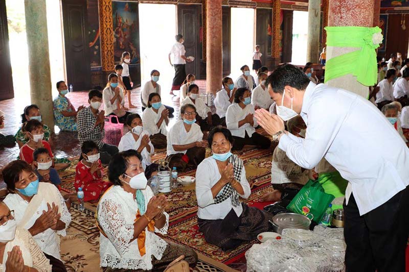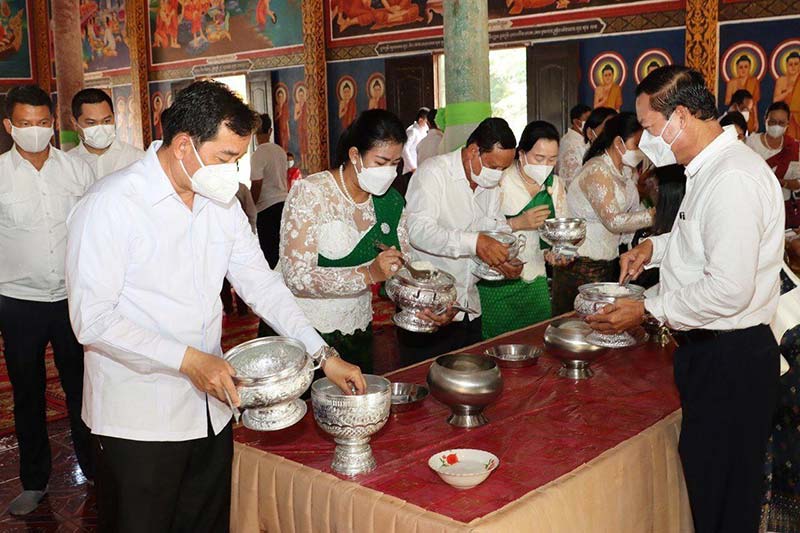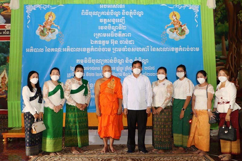 កំពង់ចាម : ឯកឧត្តម អ៊ុន ចាន់ដា អភិបាលខេត្តកំពង់ចាម និងលោកជំទាវ ញូង ចរិយា អ៊ុន ចាន់ដា ប្រធានកិត្តិយសសាខាសមាគមនារី ដើម្បី សន្តិភាព និងអភិវឌ្ឍន៍ ខេត្តកំពង់ចាម ដឹកនាំមន្ត្រីរាជជការ និងអាជ្ញាធរមូលដ្ឋាន ចូលរួមជាមួយ ពុទ្ធបរិស័ទ កាន់បិណ្ឌវេនទី២ នៅវត្តសន្ធរង្សី ស្រុកស្ទឹងត្រង់ ដើម្បី ឧទ្ទិសកុសលផលបុណ្យ ជូនទៅដល់បុព្វការីជន អ្នកស្នេហាជាតិ រួមទាំង ប្រជាពលរដ្ឋ ដែលបានស្លាប់បាត់បង់ជីវិត ដោយសារជម្ងឺកូវីដ-១៩ ផងដែរ ។