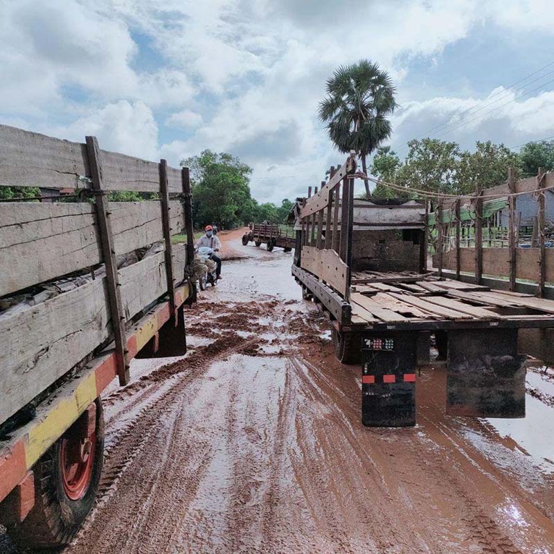 កំពង់ធំ៖ ផ្លូវលំមួយខ្សែចេញពីឃុំកំពង់ថ្មស្រុកសន្ទុក ឆ្ពោះទៅឃុំទំរីងស្រុកសណ្ដាន់ ខេត្តកំពង់ធំ ត្រូវបានរងការខូចខាតយ៉ាងធ្ងន់ធ្ងរ បន្ទាប់ពីភ្លៀងធ្លាក់ជាប់ៗគ្នាជាច្រើនថ្ងៃបណ្ដាលឲ្យទឹកជន់បុកផ្ដាច់ផ្លូវចំនួន ៣ កន្លែងនៅក្នុងភូមិសាស្ត្រឃុំក្រយា ស្រុកសន្ទុក បង្កឲ្យប្រជាពលរដ្ឋធ្វើចរាចរទៅមកជួបការលំបាកជាខ្លាំង។