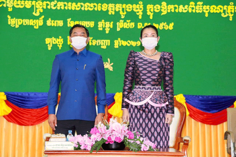 ត្បូងឃ្មុំ : ឯកឧត្តម ជាម ច័ន្ទសោភ័ណ អភិបាលខេត្តត្បូងឃ្មុំ និងលោកជំទាវ ម៉េង វ៉ាន់ដានីន ជាមច័ន្ទសោភ័ណ នាព្រឹកថ្ងៃទី៣០ ខែកញ្ញា ឆ្នាំ២០២១នេះ បានអញ្ជើញជួបសំណេះសំណាល ជាមួយក្រុមប្រឹក្សាខេត្ត គណៈអភិបាលខេត្ត ថ្នាក់ដឹកនាំ និងមន្ត្រីរាជការចំណុះសាលាខេត្ត ព្រមទាំងចែកជូន ថវិកា និង ប្រេងឥន្ធនៈ ដើម្បីជាការលើកទឹកចិត្តចំពោះកិច្ចខិតខំបំពេញភារកិច្ចនាពេលកន្លងមក និងបន្តឲ្យកាន់តែល្អបន្ថែមទៀត ក៏ដូចជាជួយសម្រួលក្នុងការធ្វើដំណើរ ទៅស្រុកកំណើត ក្នុងឱកាសពិធីបុណ្យភ្ជុំបិណ្ឌ ប្រពៃណីជាតិខ្មែរ ខណៈដែលរាជរដ្ឋាភិបាលកម្ពុជា សម្រេចផ្អាកការជួបជុំប្រារព្ធពិធីកាន់បិណ្ឌវេនទី៤ រហូតដល់ថ្ងៃភ្ជុំបិណ្ឌ។