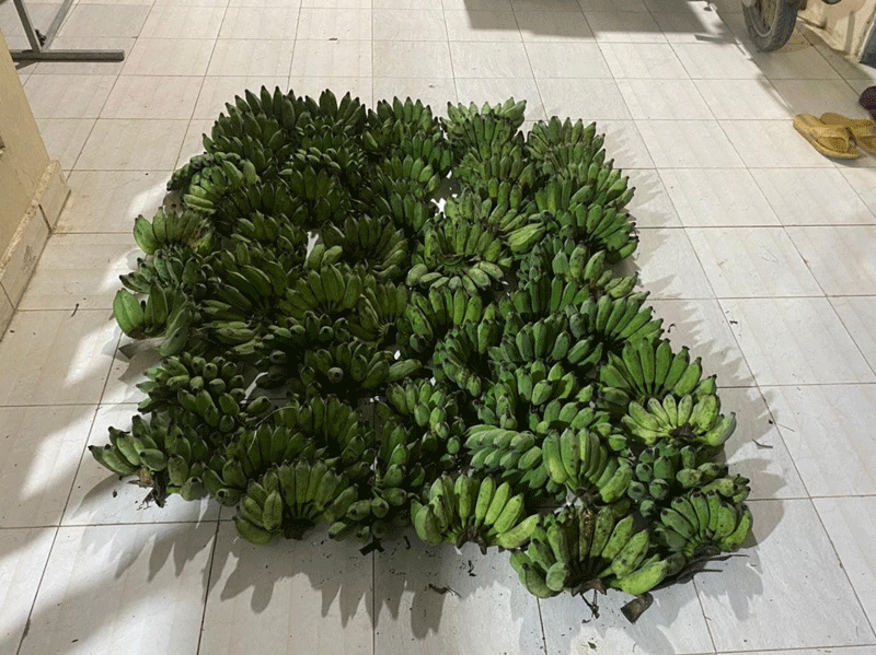នគរបាលបន្តថា ដំបូងជនរងគ្រោះបានទៅមើលចម្ការចេករបស់ខ្លួន ស្រាប់តែបានឃើញផ្លែចេករបស់ខ្លួនត្រូវបានគេលួចកាប់អស់ជាច្រើនស្ទង ហើយគរទុកនៅក្បែរចម្ការចេកនោះ ។ ក្រោយមកជនរងគ្រោះបានមករាយការណ៍ប្រាប់សមត្ថកិច្ចប៉ុស្ដិ៍តាលន់ ឱ្យជួយអន្តរាគមន៍ ។