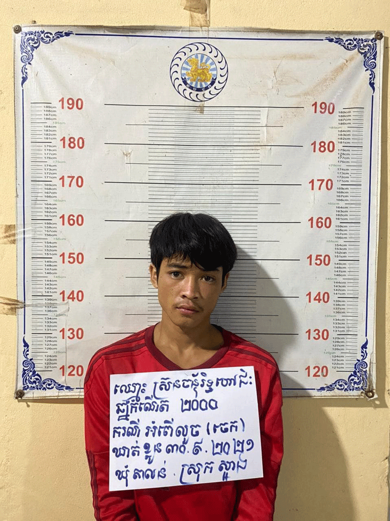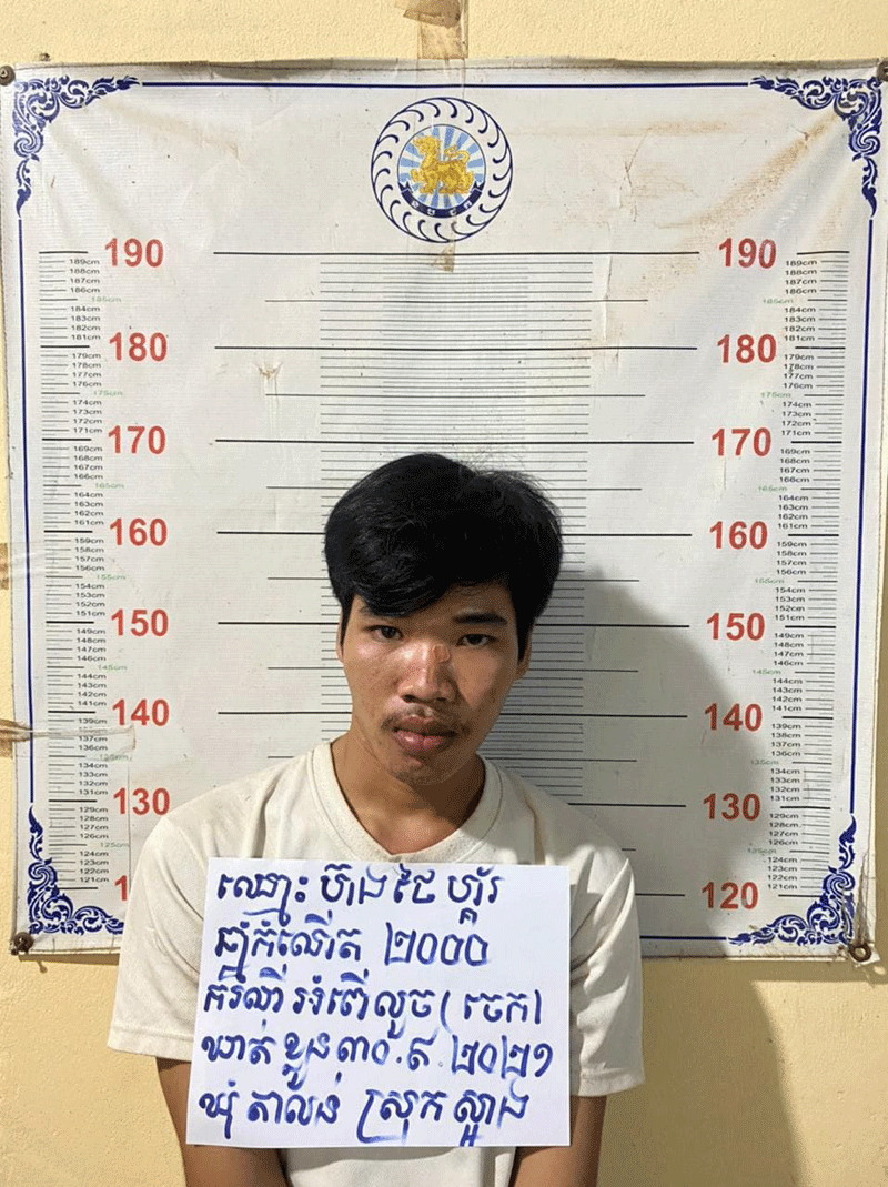 ចំណែកជនសង្ស័យ២នាក់រួមមាន ១-ឈ្មោះ ស៊្រន ច័ន្ទរិទ្ធ ហៅជិះ ភេទប្រុស អាយុ២១ឆ្នាំ ជនជាតិខ្មែរ មុខរបរមិនពិត, ២-ឈ្មោះ ហ៊ង ថៃហ្គ័រ ភេទប្រុស អាយុ២១ឆ្នាំ ជនជាតិខ្មែរ មុខរបរមិនពិតប្រាកដ (មានផ្ទុកនូវសារធាតុញៀន) ទាំងពីរនាក់មានទីលំនៅភូមិព្រែកស្លែង ឃុំតាលន់ ស្រុកស្អាង ខេត្តកណ្ដាល ។ វត្ថុតាងចាប់យកចេកណាំវ៉ា ចំនួន៦៥ស្និតជារបស់ជនរងគ្រោះ។