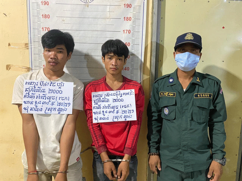 លុះនៅវេលាម៉ោង៥និង៣០នាទីល្ងាច ទើបសមត្ថកិច្ចបានឃើញជនសង្ស័យទាំងពីរធ្វើសកម្មភាព ជិះម៉ូតូខាងលើដឹកចេកណាំវ៉ារបស់ជនរងគ្រោះចេញពីចំណុចកើតហេតុ ,ភ្លាមនោះសមត្ថកិច្ចក៏បានធ្វើការឃាត់ខ្លួនជនសង្ស័យរួមនឹងវត្ថុតាង បញ្ជូនមកអធិការដ្ឋាននគរបាលស្រុកស្អាងដើម្បីកសាងសំណុំរឿងយកទៅអនុវត្តន៍តាមនីតិវិធីតែម្ដង ៕