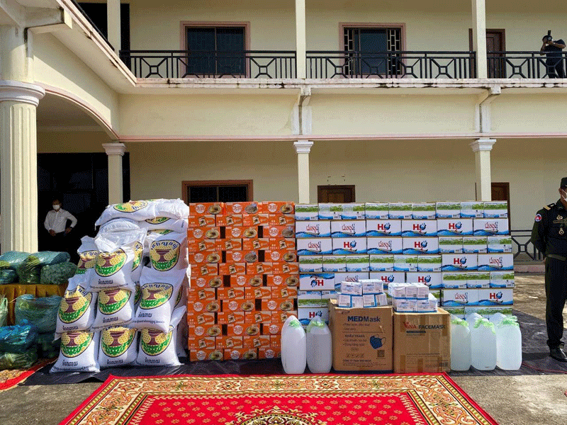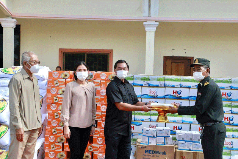 ចំពោះអំណោយនាំយកទៅផ្តល់ជូនរួមមាន អង្ករ២តោន ទឹកសុទ្ធ២០០កេស មី១០០កេស ម៉ាស៥០០០ម៉ាស អាល់កុល១៥០លីត្រ បន្លែ១៨០គីឡូក្រាម និងថវិកាមួយចំនួន៕