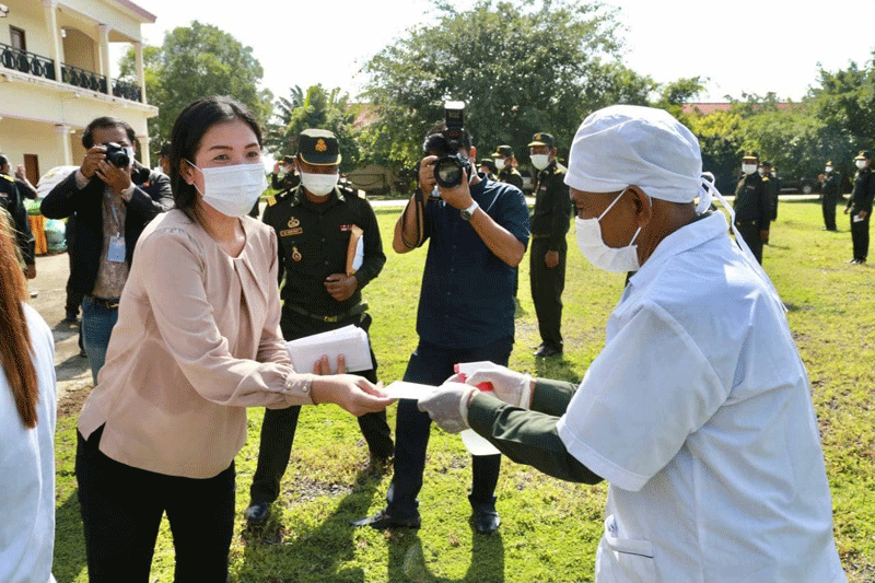 ត្បូងឃ្មុំ : ឯកឧត្តម ជាម ច័ន្ទសោភ័ណ អភិបាលខេត្តត្បូងឃ្មុំ និងលោកជំទាវ ម៉េង វ៉ាន់ដានីន នាព្រឹក ថ្ងៃទី ១ ខែតុលា ឆ្នាំ ២០២១នេះ បាន អញ្ជើញ នាំយក អំណោយរបស់ឯកឧត្តមបណ្ឌិត ហ៊ុន ម៉ាណែត អគ្គមេបញ្ជាការរងកងយុទ្ធពលខេមរភូមិន្ទ និងជាមេបញ្ជាការកងទ័ពជើងគោក និងលោកជំទាវ ពេជ ចន្ទមុនី ប្រគល់ជូនកងកម្លាំងតំបន់ប្រតិបត្តិការសឹករងខេត្តត្បូងឃ្មុំ សម្រាប់ផ្គត់ផ្គង់ក្នុងឳកាសពិធីបុណ្យភ្ជុំបិណ្ឌ និងប្រយុទ្ធ ប្រឆាំង នឹងជំងឺកូវីដ-១៩ ពិសេសបន្តកិច្ចការពារបូរណភាពទឹកដី។