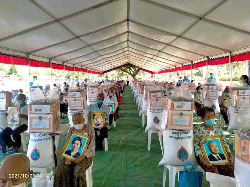 ទន្ទឹមនេះ ដើម្បីចូលរួមអបអរសាទរទិវាមនុស្សចាស់កម្ពុជា និងមនុស្សចាស់អន្តរជាតិ ១ តុលា ២០២១នេះ ព្រះអង្គក៏បានព្រះបរមរាជានុញ្ញាតជូនសម្តេច នាំយកនូវព្រះរាជអំណោយមកចែកជូនដល់លោកយាយ លោកតាទាំង ៤៦៥នាក់នាពេលនេះ ដើម្បីជាការចូលរួមចំណែកសម្រួលជីវភាពរសនៅរបស់លោកយាយ លោកតា ក្នុងអំឡុងពេលដែលប្រទេសកម្ពុជា កំពុងទប់ស្កាត់ការឆ្លងរីករាលដាលនៅជំងឺកូវីដ-១៩មិនទាន់ស្រាកស្រាននៅឡើយ ។
