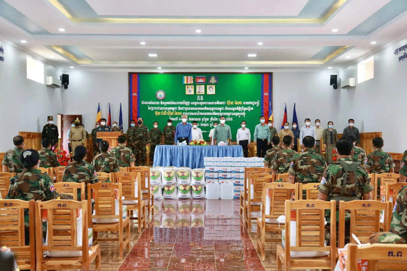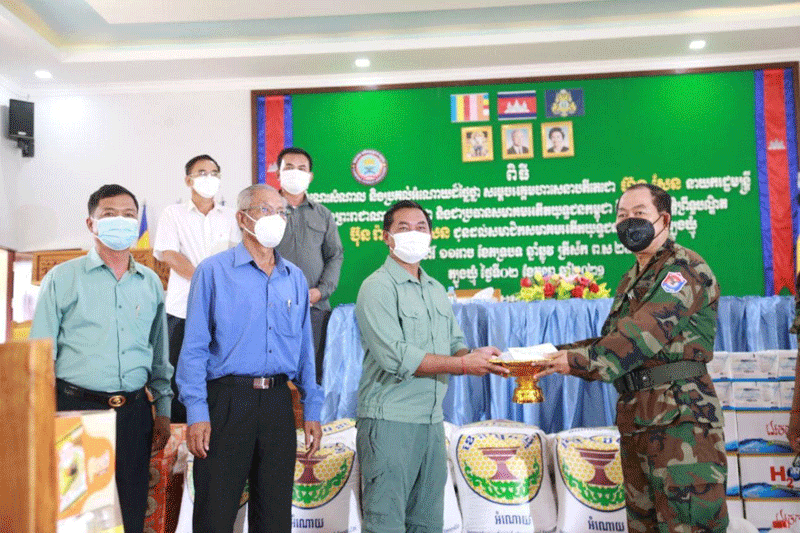 ចំពោះអំណោយនាំយកទៅផ្តល់ជូនរួមមាន សមាជិកសមាគមអតីតយុទ្ធជនកម្ពុជា៧៥នាក់ ក្នុងម្នាក់ទទួលបាន អង្ករ២៥គីឡូក្រាម មី១កេស ទឹកសុទ្ធ១កេស ត្រីខ១យួរ ប៊ីចេង១កញ្ចប់ ប្រេងឆា១ដប ទឹកត្រី១ដប ទឹកសុីអុីវ១ដបខ្ទឹមស ថវិកា១០០.០០០រៀល និងផ្តល់ជូនកងពលតូចថ្មើរជើងលេខ២១ អង្ករ១តោន ទឹកសុទ្ធ១០០កេស មី៦០កេស ម៉ាស២៥០០ម៉ាស អាល់កុល៦០លីត្រ និងថវិកាមួយចំនួន។
