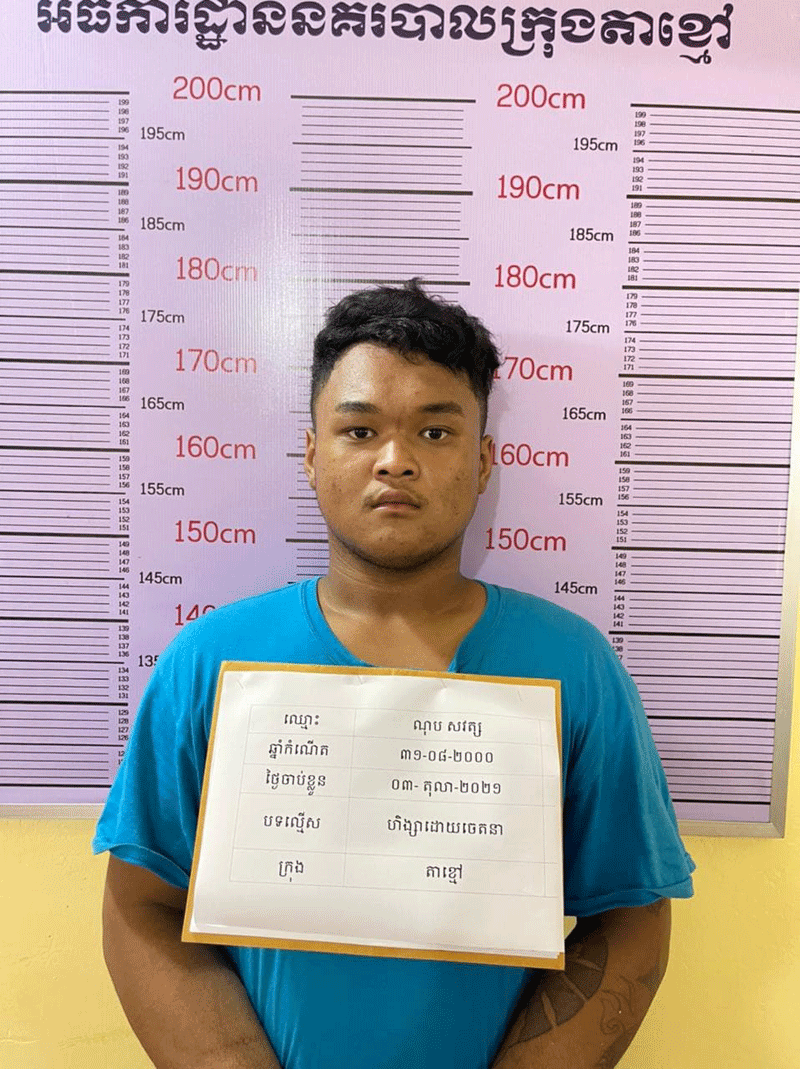កណ្តាល ៖ ទំនាស់ពាក្យសំដីនៅតារាងបាល់ទះ រហូតប្រើហិង្សាដោយចេតនាដោយយកកូនកាំបិតចាក់គូទំនាស់ឱ្យរបួស កាលពីថ្ងៃទី០២ខែតុលាឆ្នាំ២០២១ វេលាម៉ោង៥ និង២០នាទីល្ងាច នៅចំណុចតារាងបាល់ទះភូមិព្រែកតាព្រីង សង្កាត់សិត្បូ ក្រុងតាខ្មៅ ខេត្តកណ្តាល ហើយត្រូវប៉ូលិសប៉ុស្តិ៍សិត្បូឃាត់ខ្លួននាថ្ងៃទី៣តុលាឆ្នាំ២០២១។