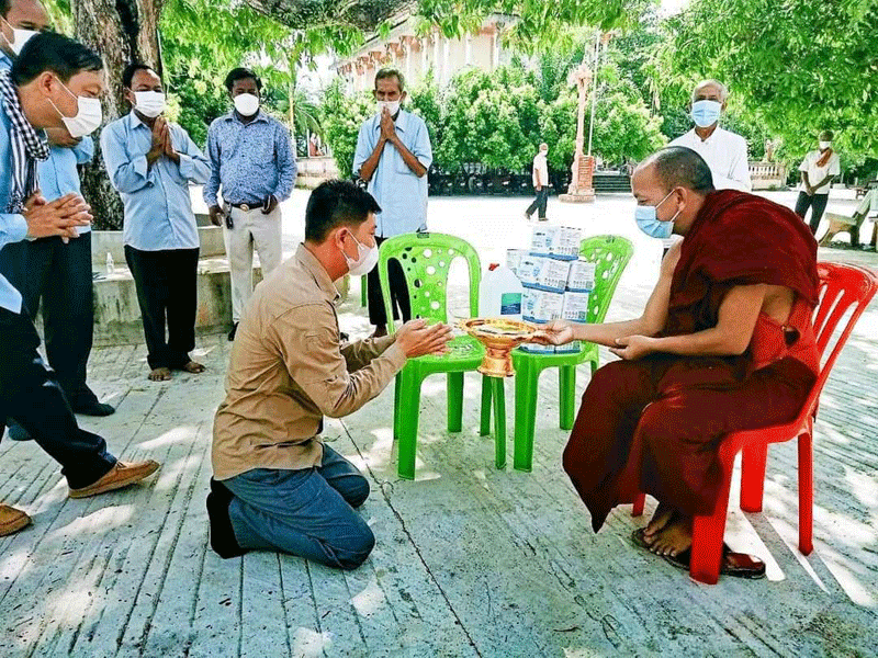 ហើយព្រះសង្ឃ និងគណៈកម្មការវត្ត ត្រូវរៀបចំកន្លែងទទួលបច្ច័យ កន្លែងអុជទានធូប ឬទីសក្ការៈបូជា ឱ្យមានសុវត្ថិភាព ពោលគឺរៀបចំឱ្យមានគម្លាត ណែនាំឱ្យពាក់ម៉ាស់ និងកុំប្រជ្រៀតគ្នា។