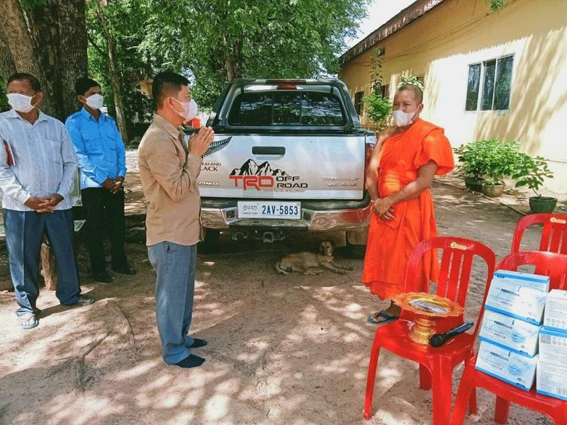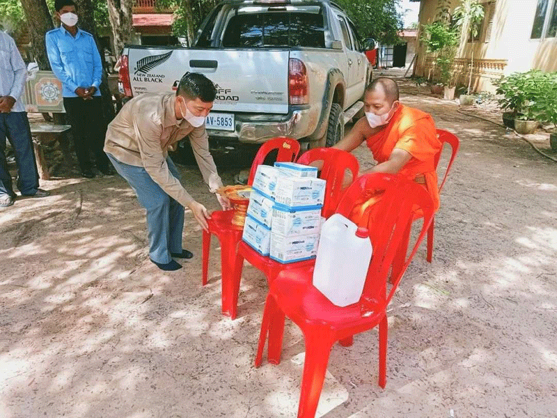 ជាមួយគ្នានេះដែរ ឯកឧត្តមអភិបាលរងខេត្ត និងក្រុមការងារ ក៏បានប្រគេនបច្ច័យ និងសម្ភារៈដល់វត្តទាំងបី ដោយក្នុង១វត្ត ទទួលបាន:ថវិកាចំនួន ៣៨០,០០០រៀល ម៉ាស់ ១០ប្រអប់ និងអាល់កុល ៥លីត្រ ៕