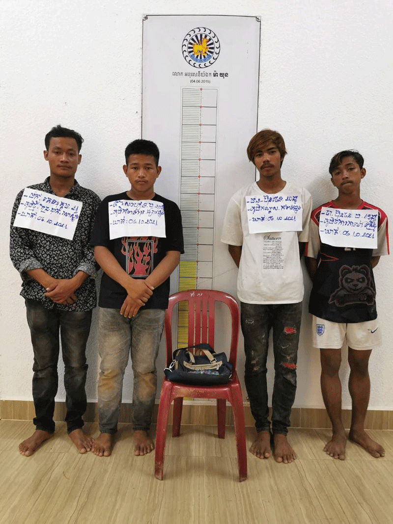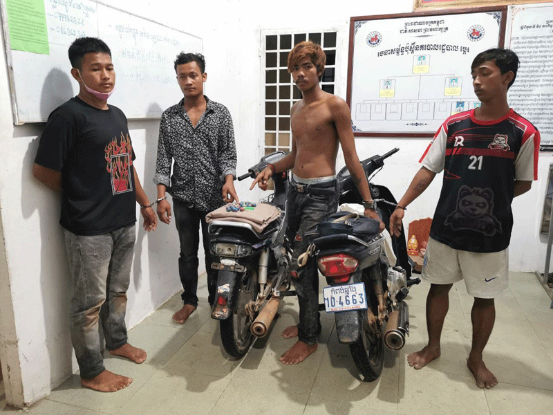 កំពង់ឆ្នាំង:នៅវេលាម៉ោង៩និង០០នាទីថ្ងៃទី៦តុលា២០២១សមត្ថកិច្ចក្រុងកំពង់ឆ្នាំងឃាត់ខ្លួន៤នាក់ជិះម៉ូតូដុតផាវបោះលើផ្លូវសាធារណៈនៅពេលយប់បង្កការភ្ញាក់ផ្អើលថ្ងៃបុណ្យភ្ជុំបិណ្ឌ ។