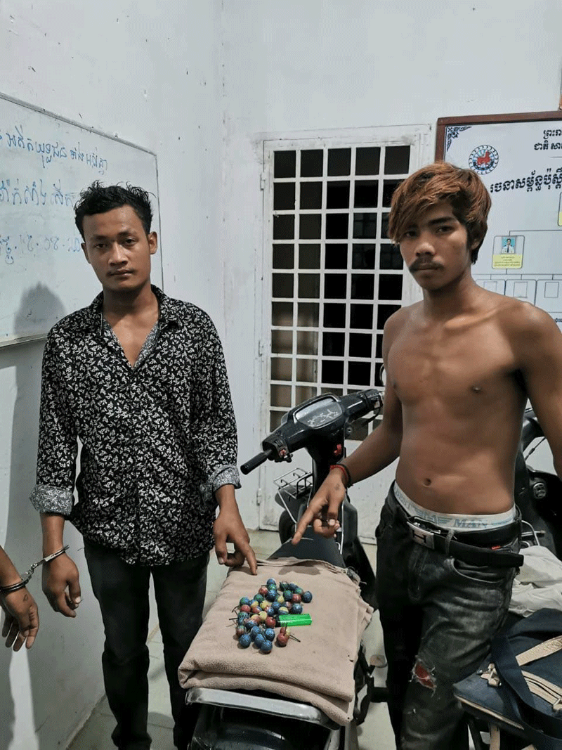 ក្រោយការឃាត់ខ្លួនជនសង្ស័យទាំង៤នាក់ខាងលើសមត្ថកិច្ចដកហូតបាន ផាវគ្រាប់បែក ៣៦ គ្រាប់ ម៉ូតូ២គ្រឿង ដែកកេះ២ កាបូបស្ពាយដាក់ផាវ១ ។