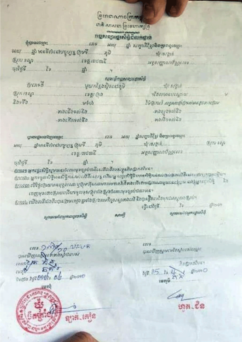 *ទី៤៖ ឈ្មោះ ឡាក់ គាន ភេទប្រុស អាយុ៣៥ឆ្នាំ ទីកន្លែងកំណើតនៅទីរួមខេត្តកំពត ជាអតីតមេឃុំបិតត្រាំង ជំនាញក្លែងឯកសា គ្រប់ទម្រង់ឯកសារលើលិខិតទិញ-លក់ និងលើលិខិតបញ្ជាក់ផ្សេងៗទៀត